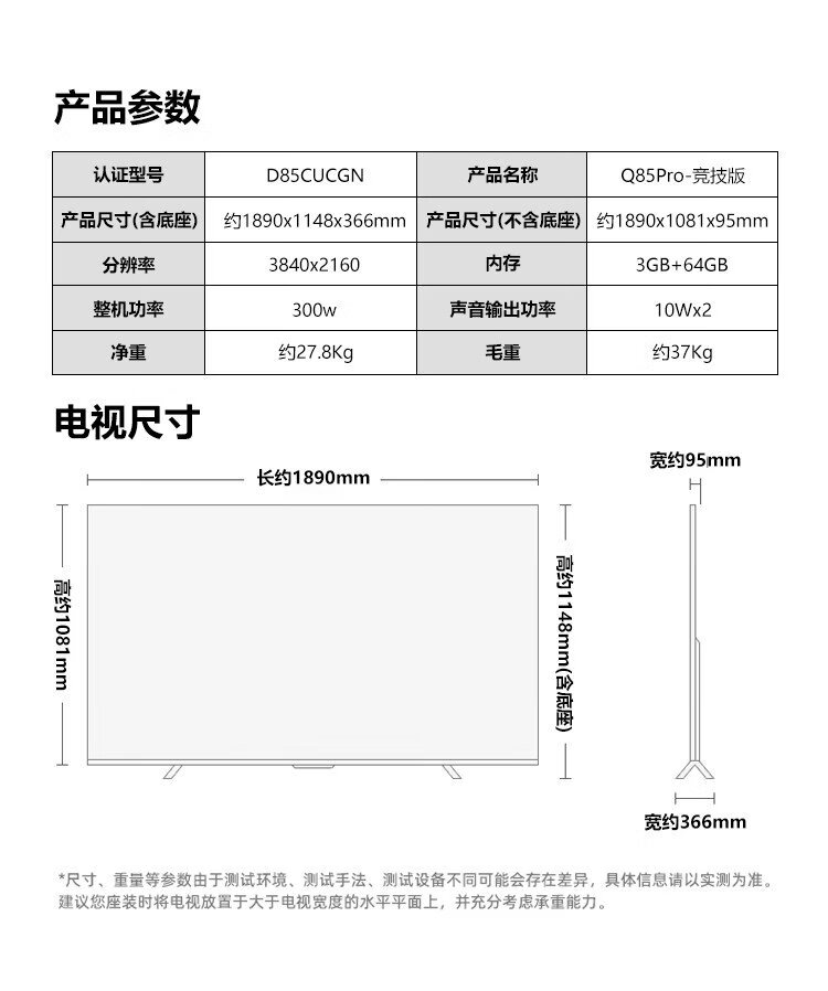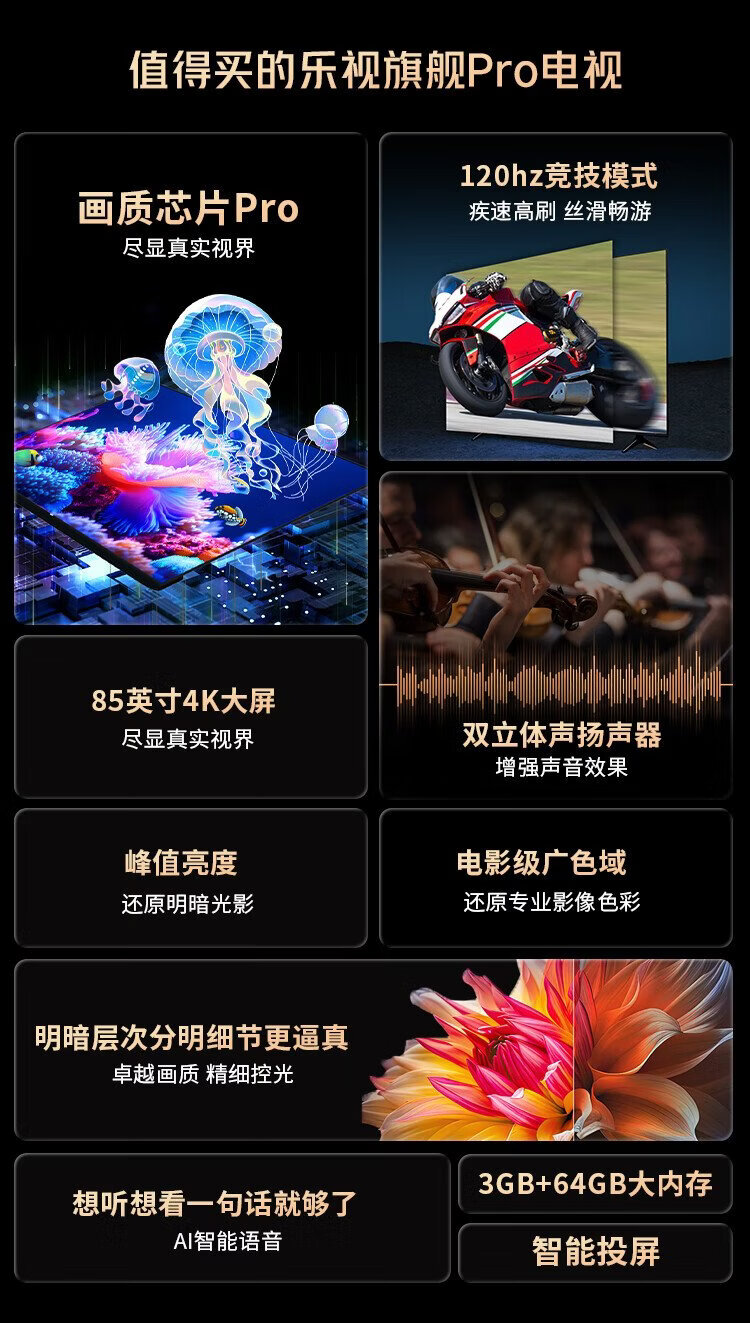 LeTV Economical LeTV Q85 Pro Competitive Edition 85-inch 3+64GB Level 1 Energy Efficiency 120hz High Brush 4K Ultra-clear Large Screen Game TV D85CUCGN