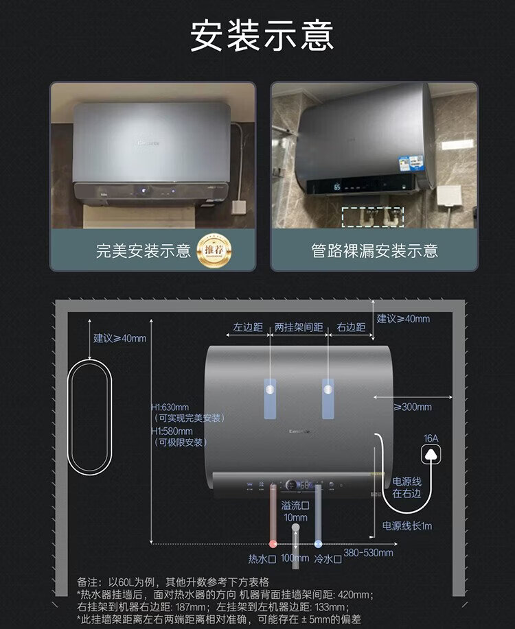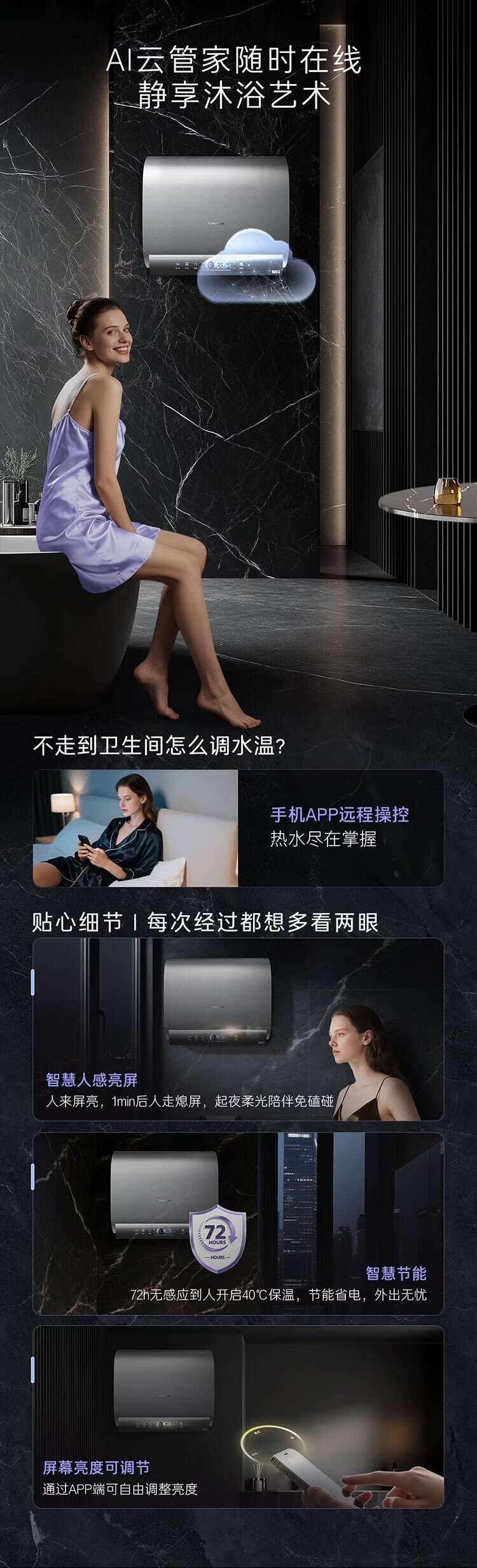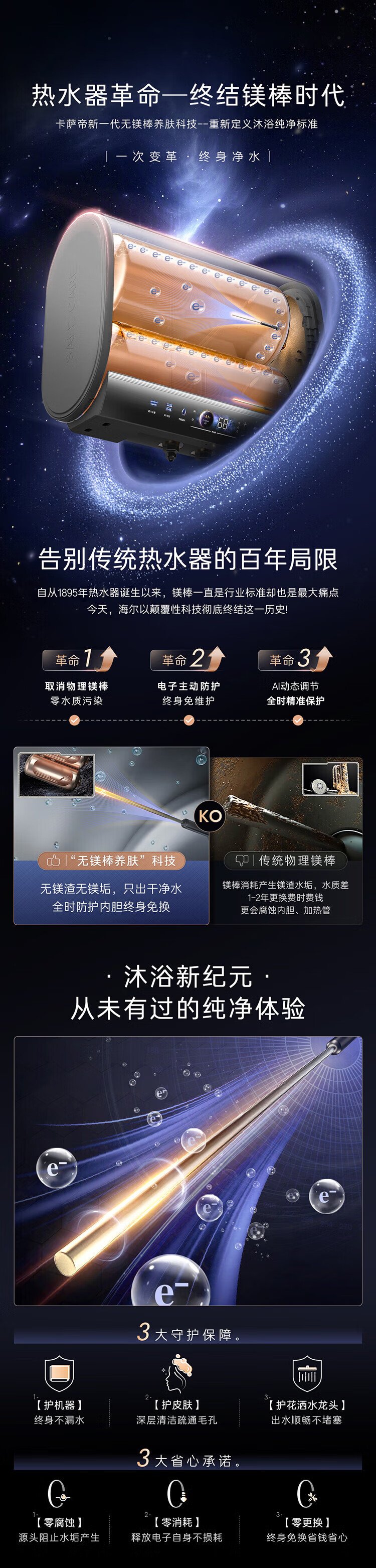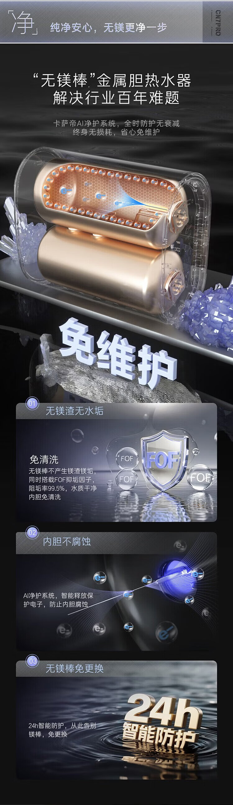 Casarte (Casarte) national subsidy 15% magnesium rod-free CN7PRO 60-liter double-gallon flat barrel electric water heater ultra-thin 3.3kw fast heating first-class energy efficiency fast heating Jingdong self-operated door-to-door installation
