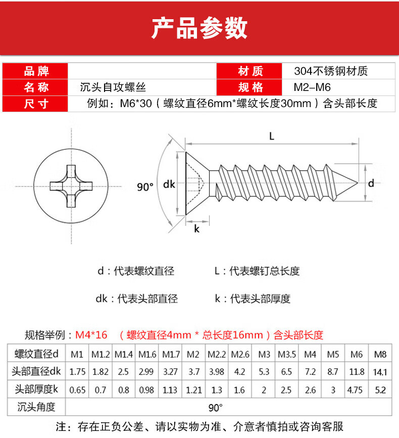 JESTIN Cross flat head self-tapping 304 stainless steel countersunk head self-tapping screws 4.2*25 50 pieces 304