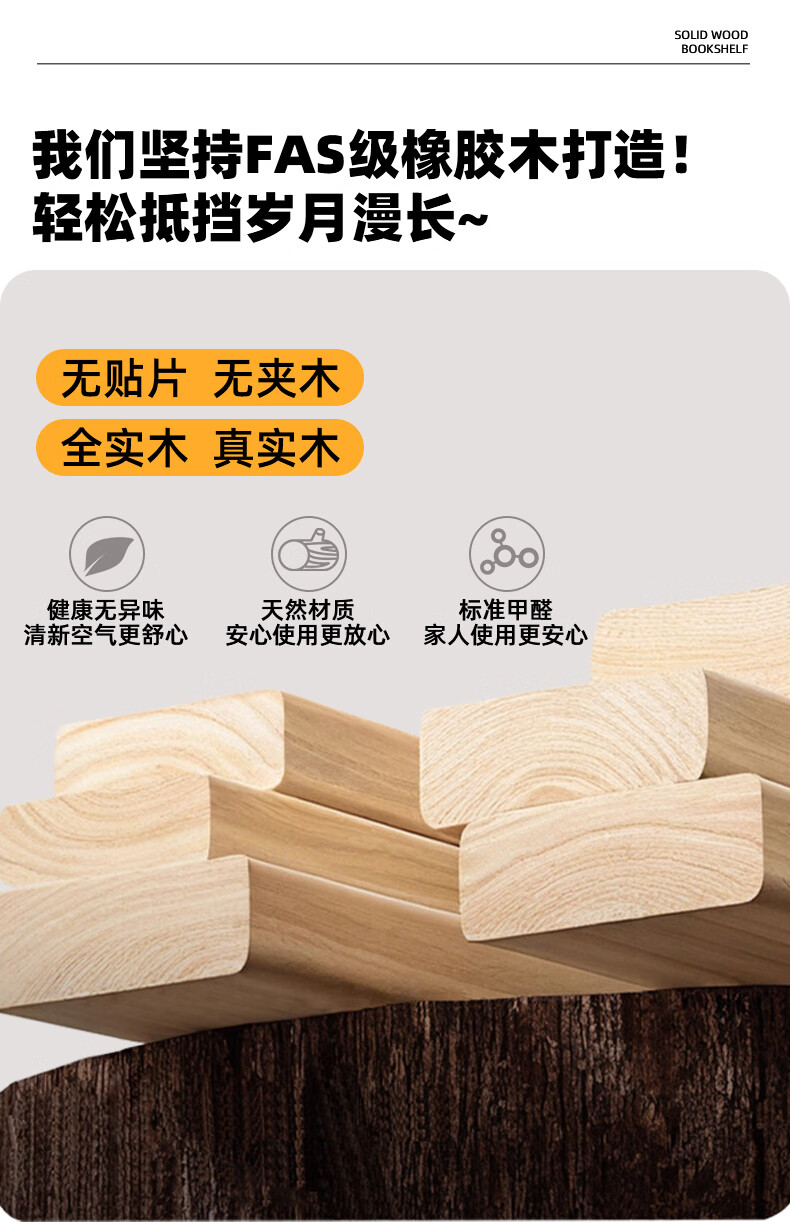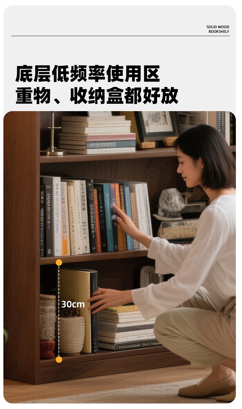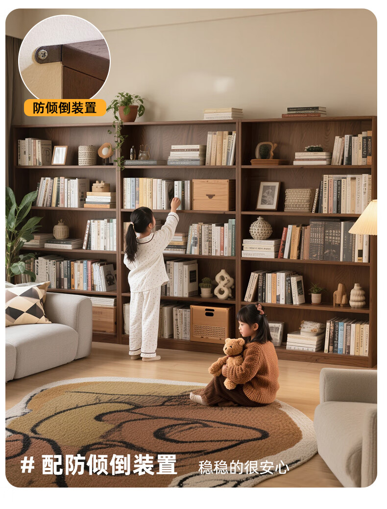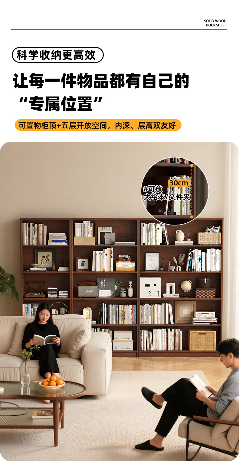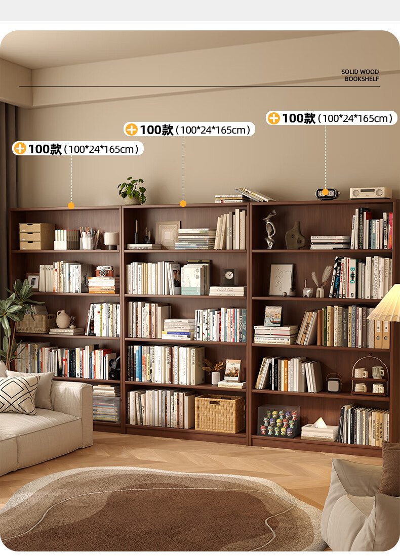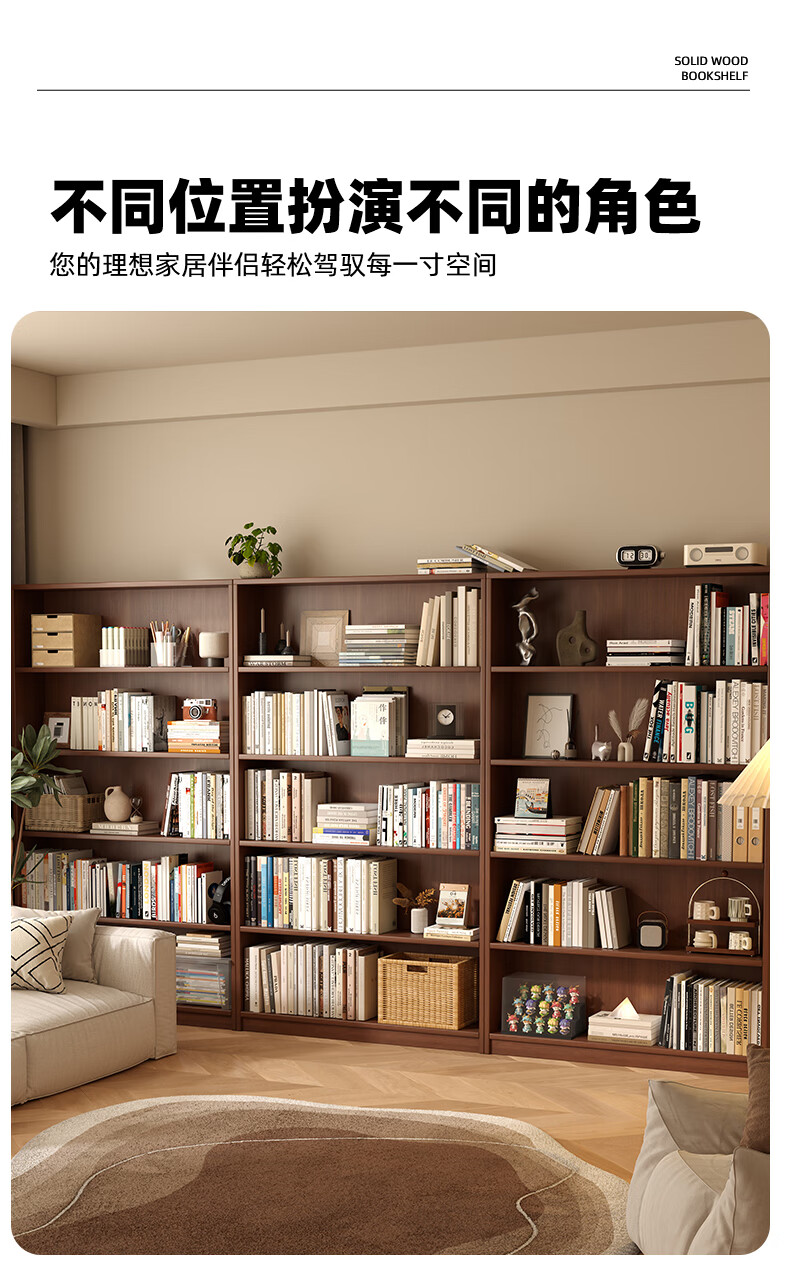 Jiayi solid wood bookcase storage cabinet integrated wall combination cabinet living room floor-standing bookshelf storage rack storage cabinet display cabinet
