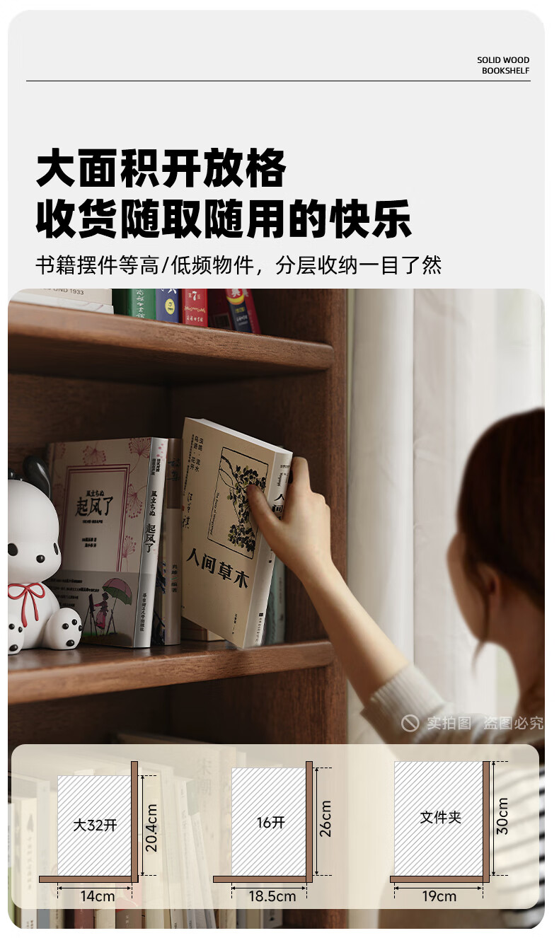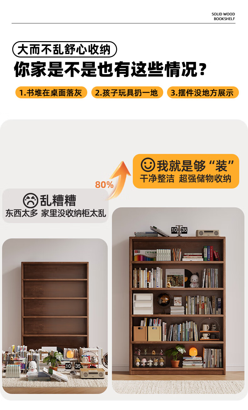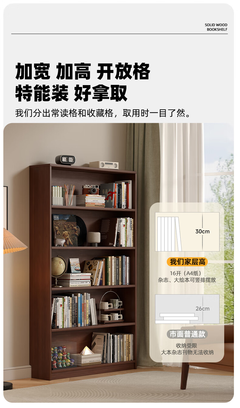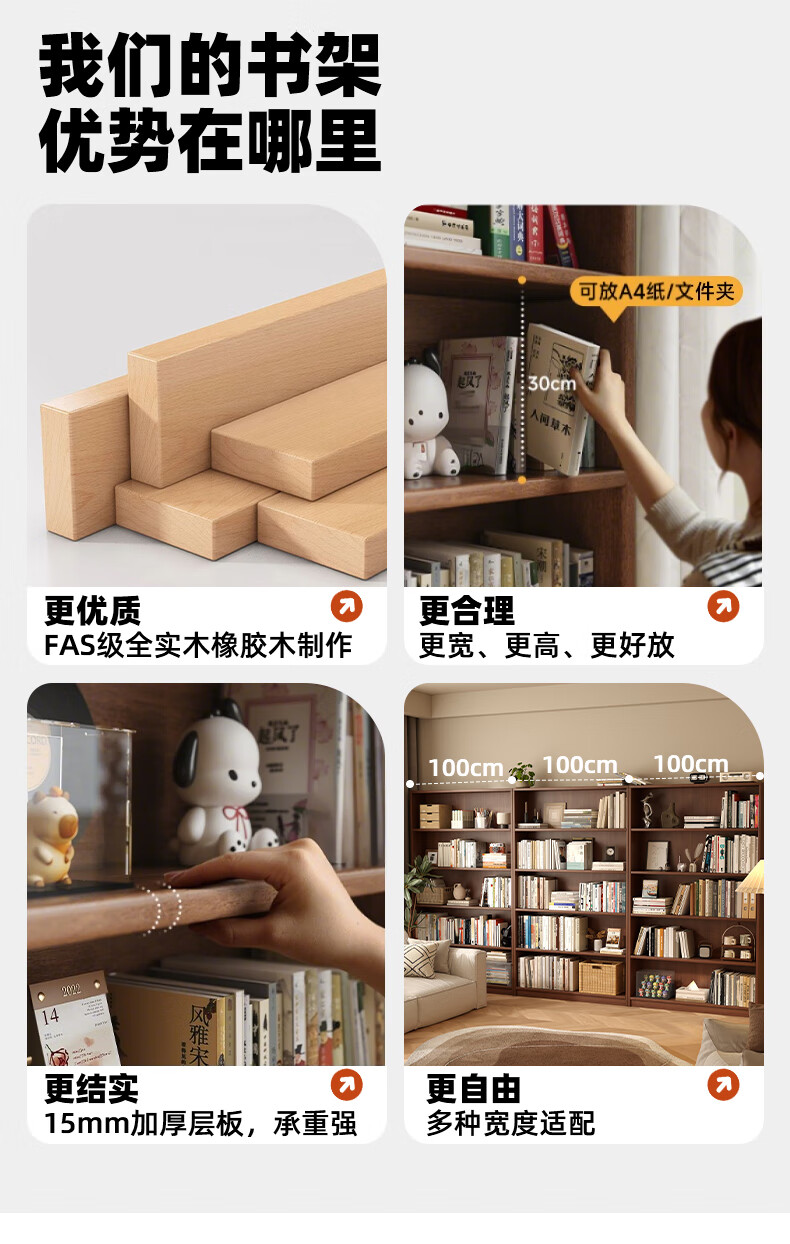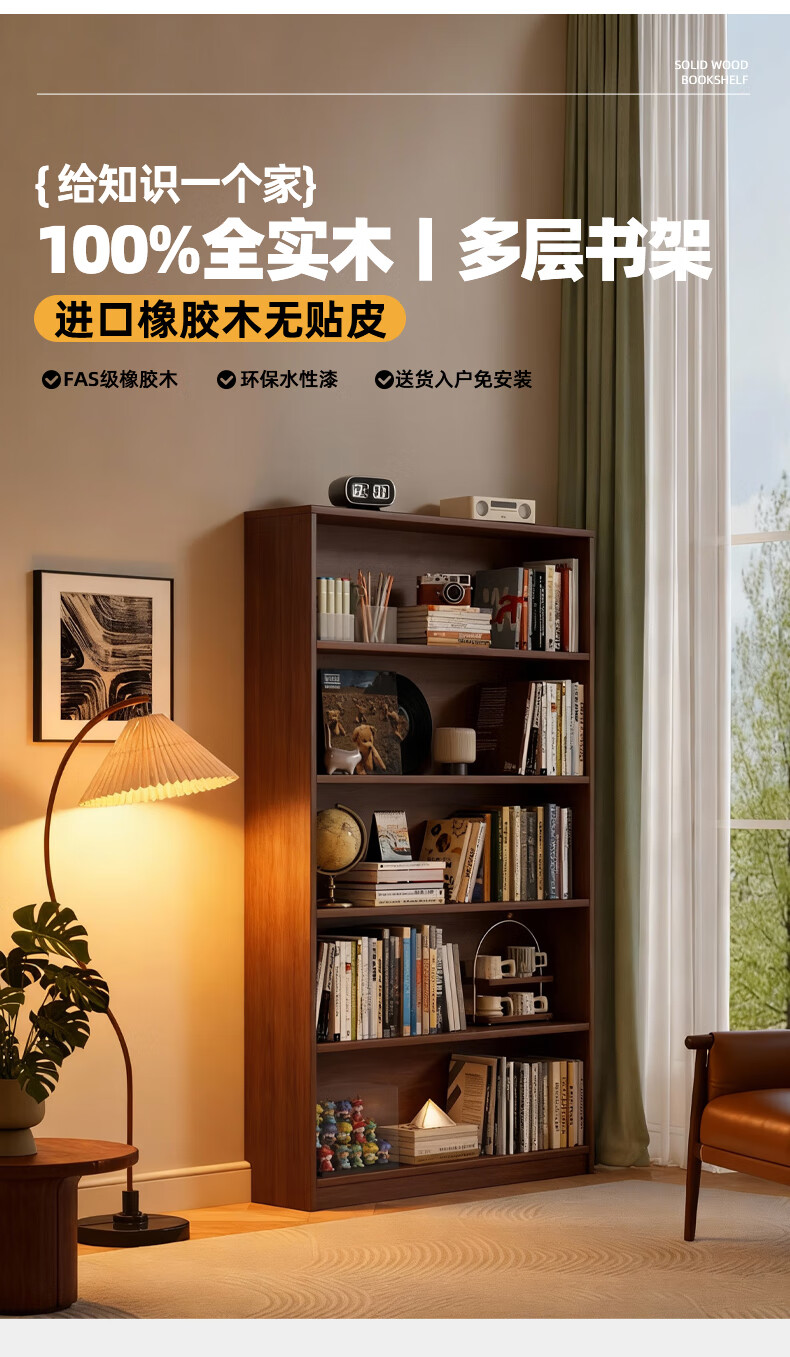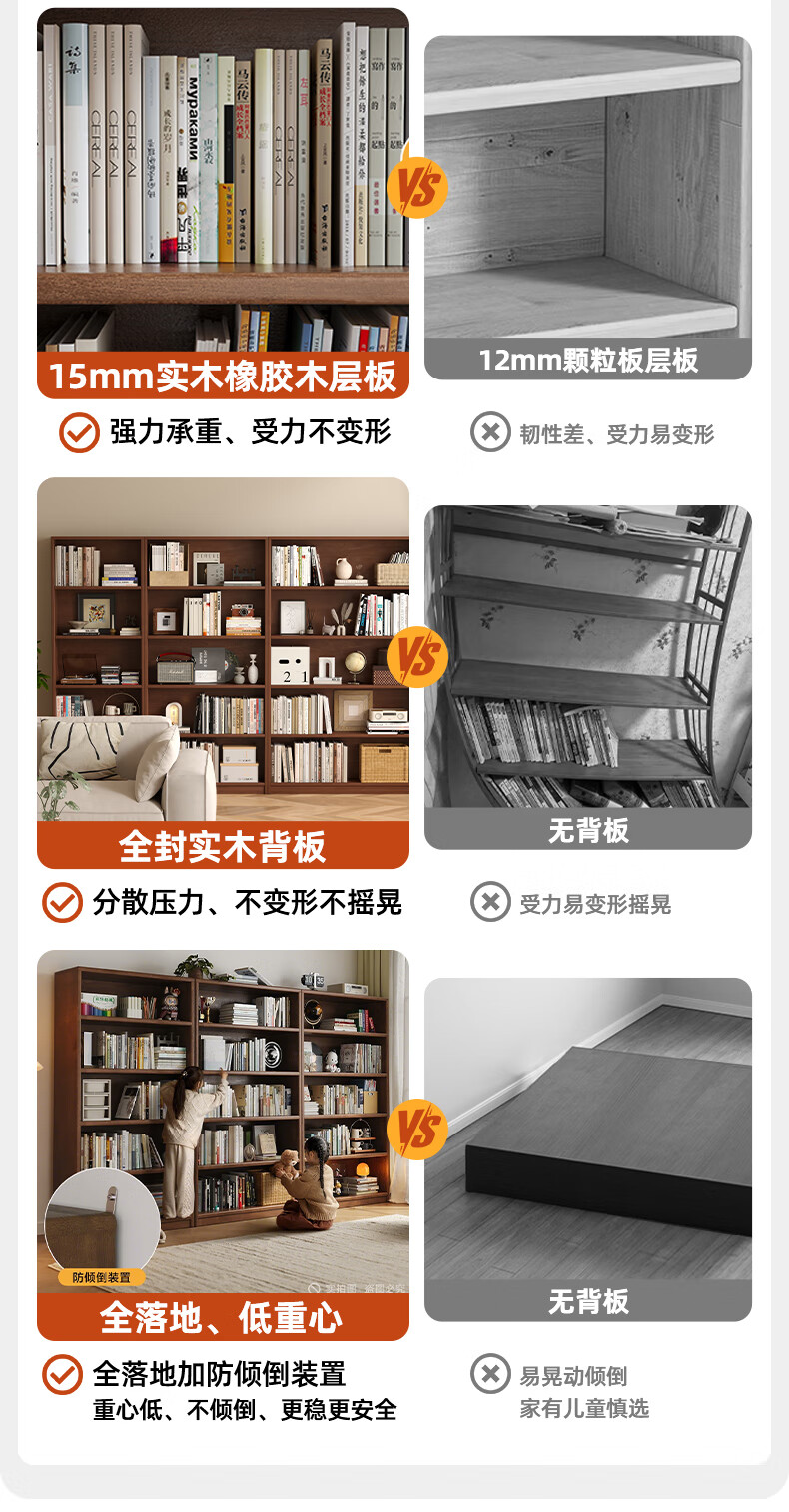 Jiayi solid wood bookcase storage cabinet integrated wall combination cabinet living room floor-standing bookshelf storage rack storage cabinet display cabinet
