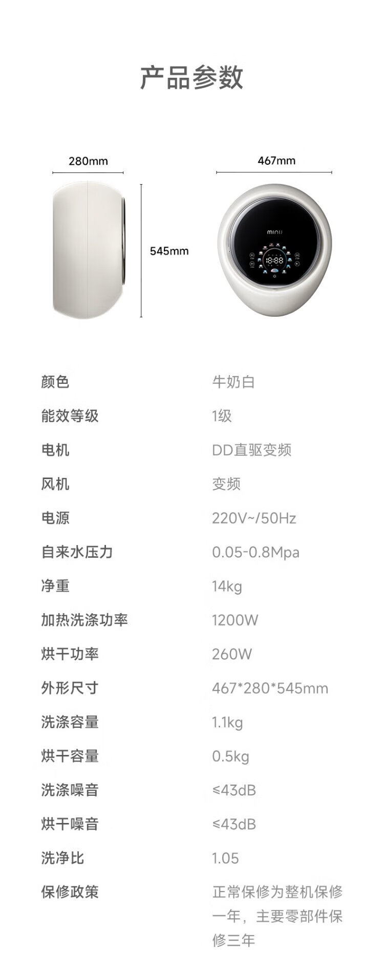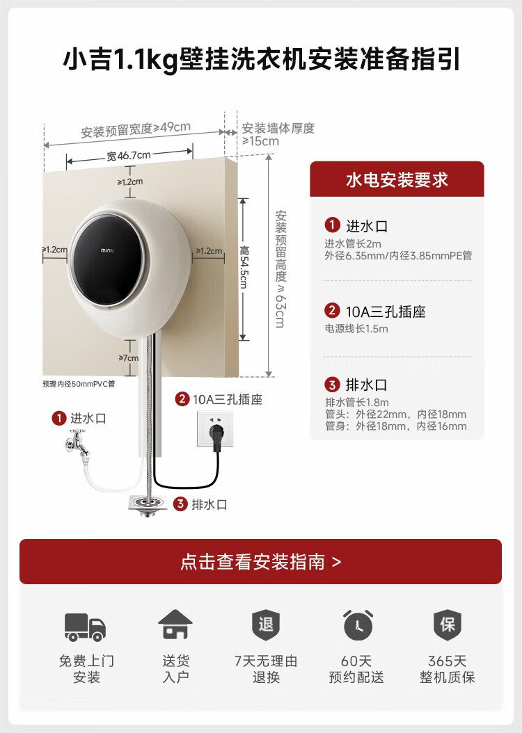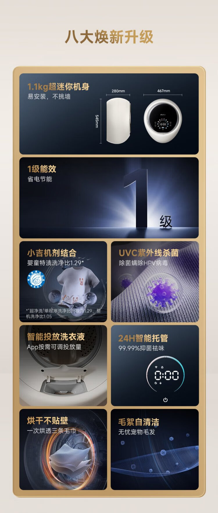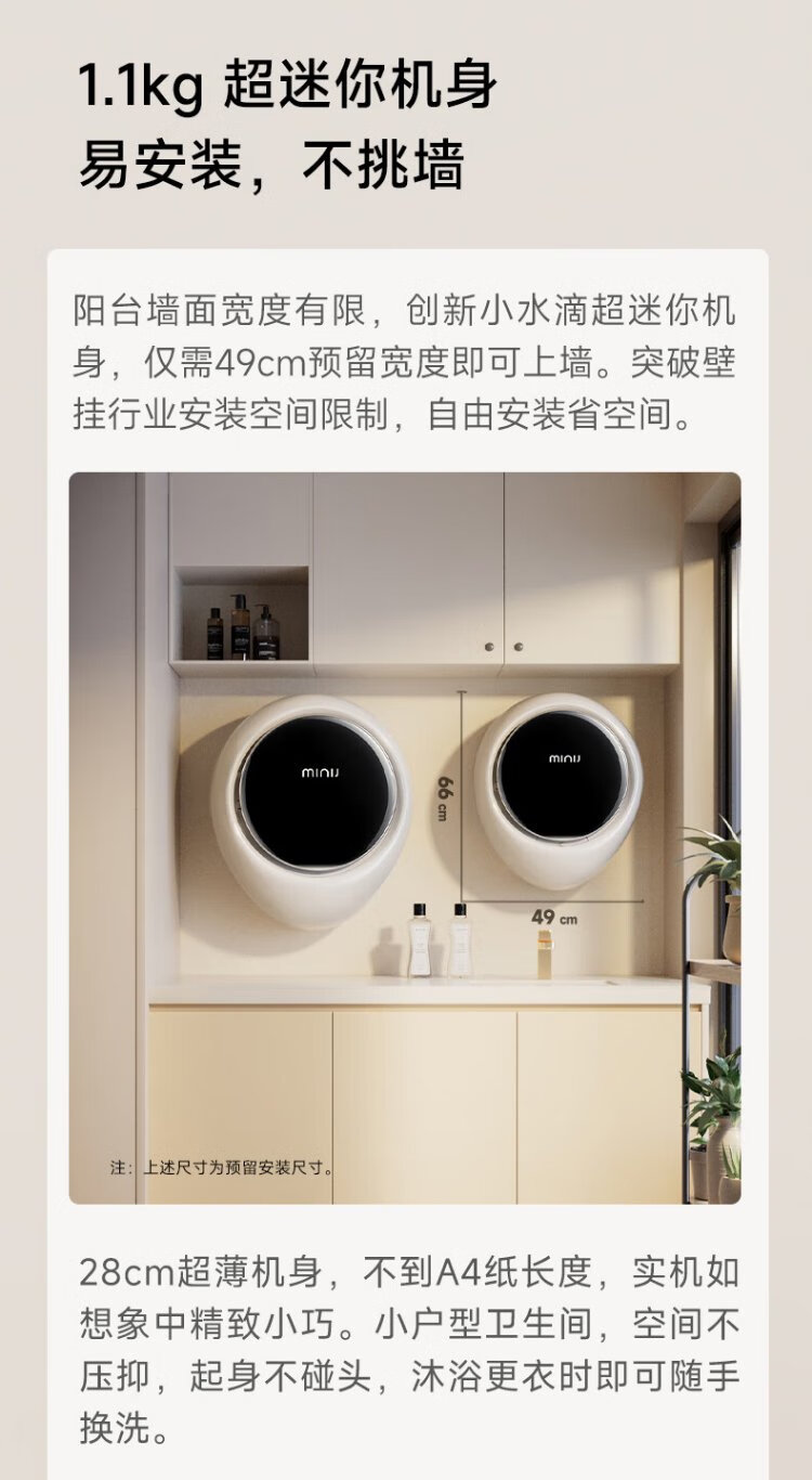 MINIJ Machine King of the Year 1.1kg wall-mounted washing machine mini ultra-thin washing and drying integrated first-class energy efficiency V7-XMB Pro