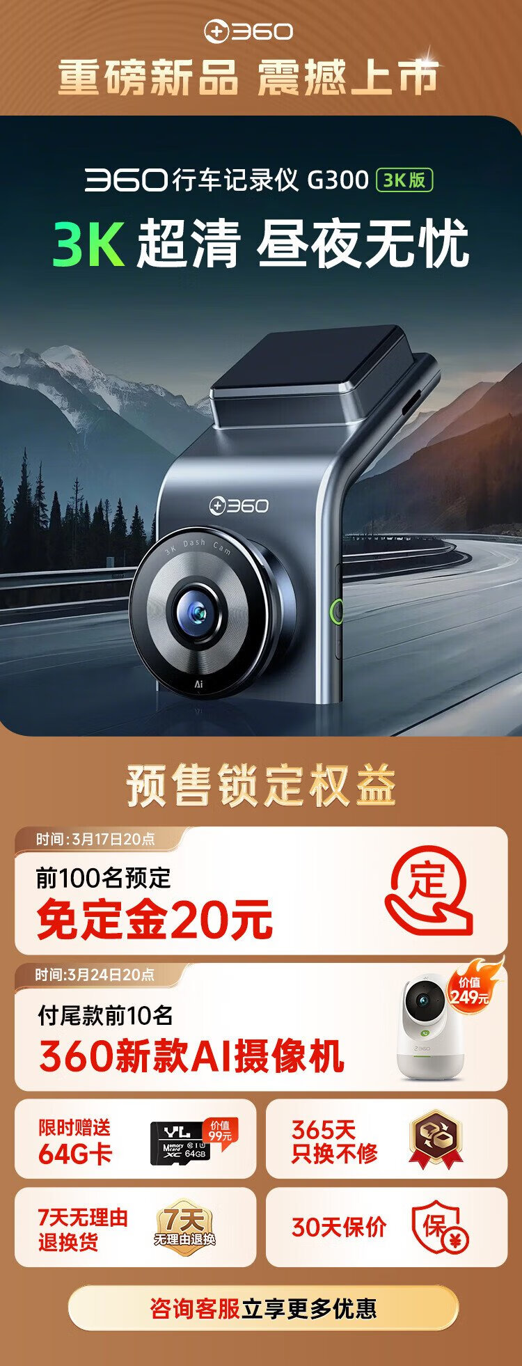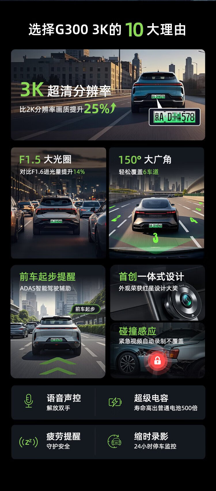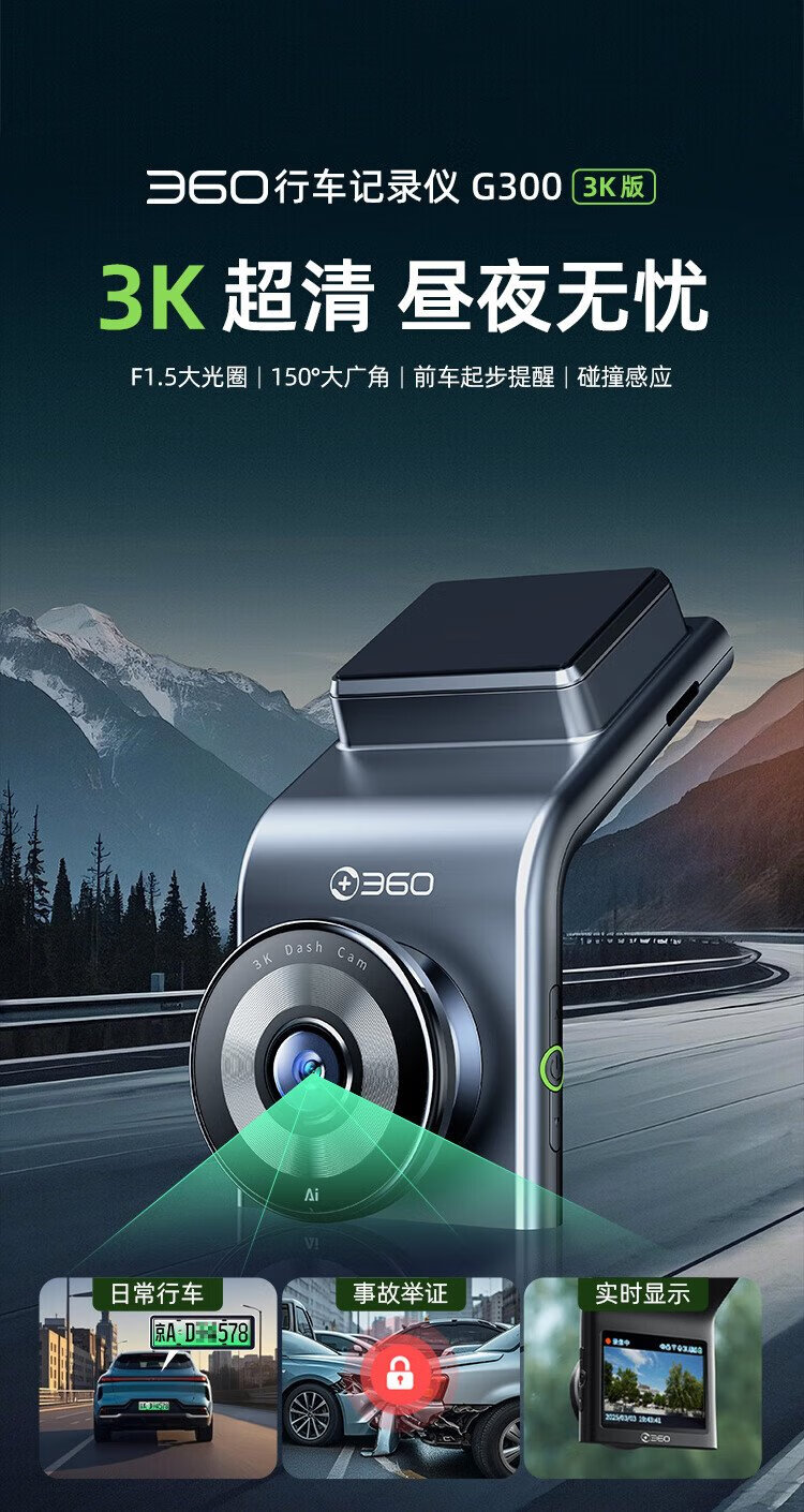 360 driving recorder G300 3K low-light night vision high-definition video hidden