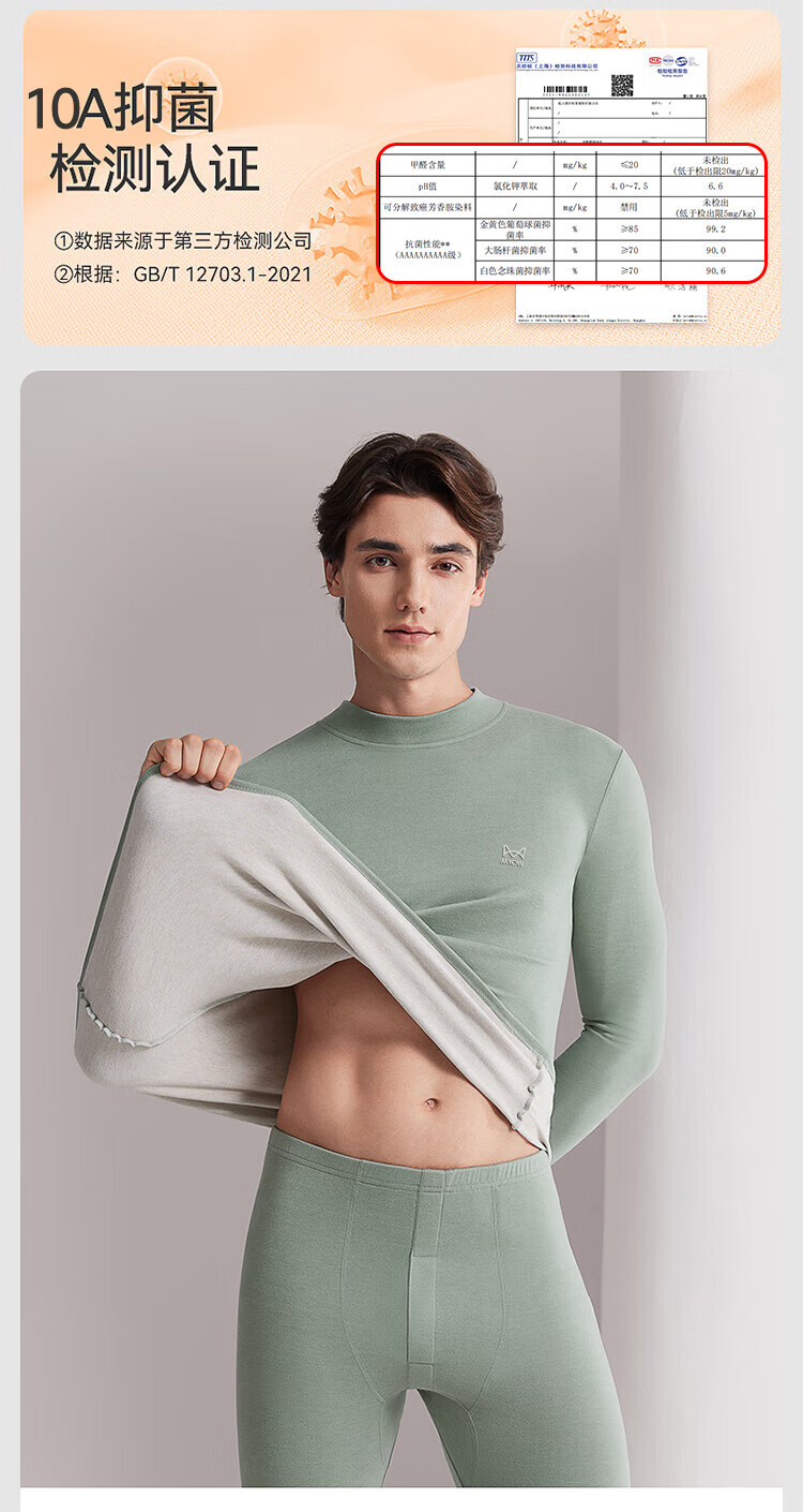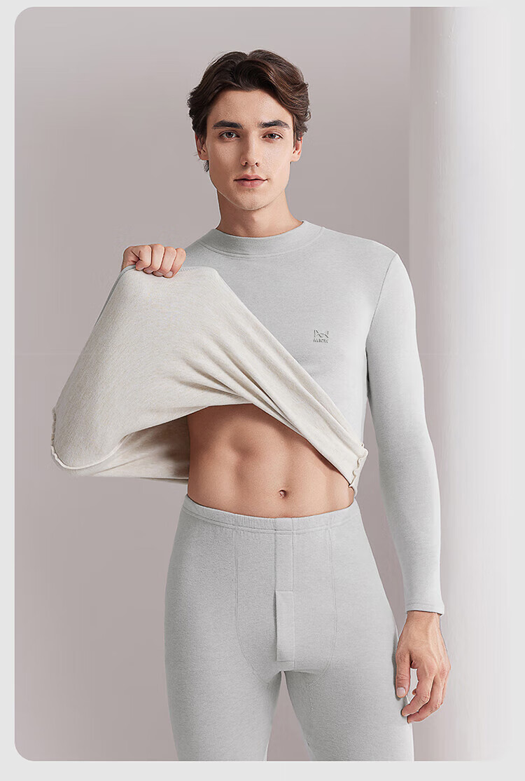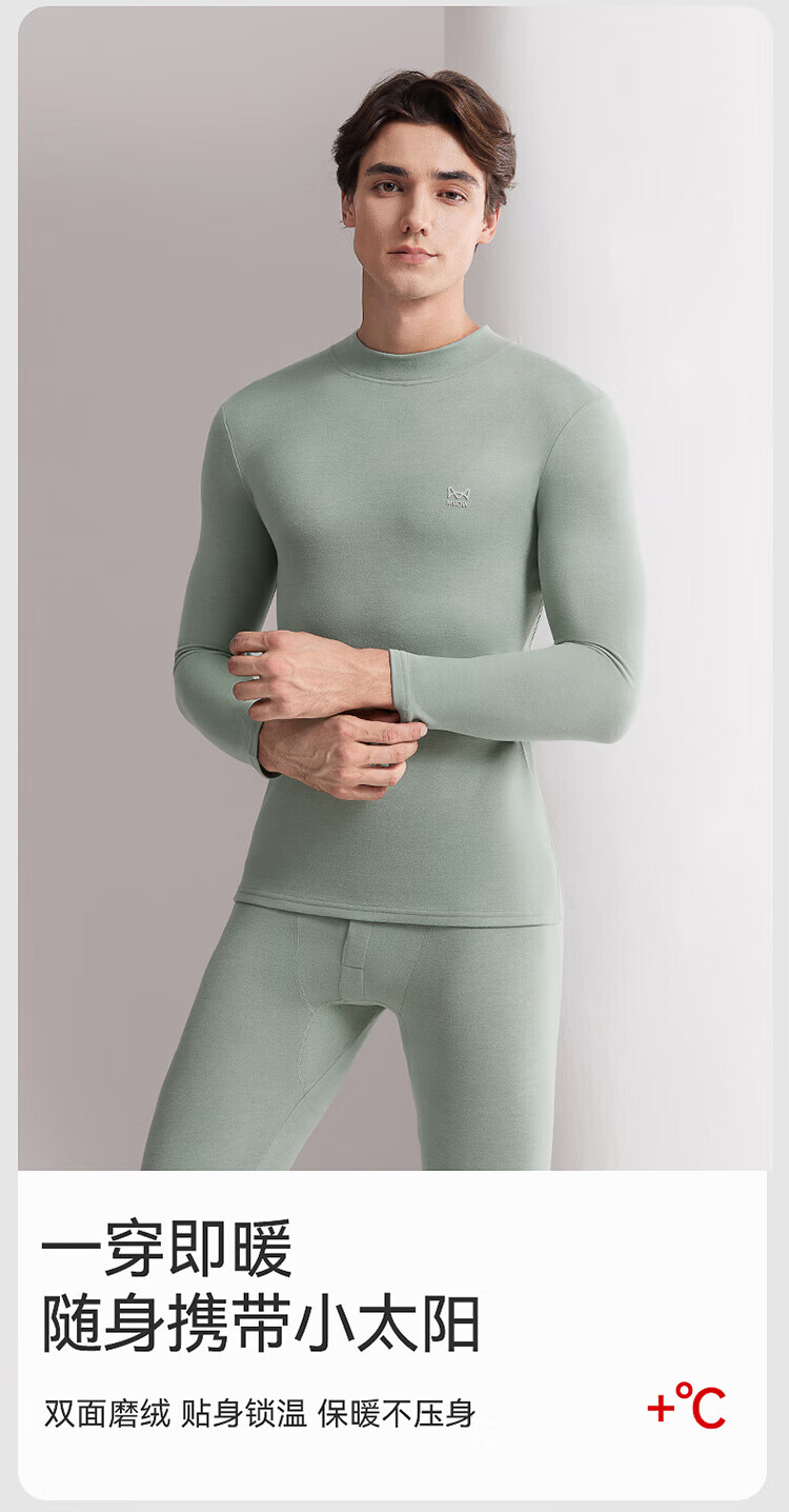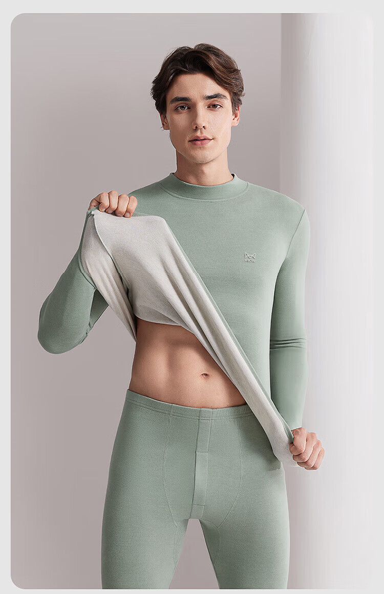 MiiOW mid-collar thermal underwear men's suit cashmere silk half-turtle collar German velvet cold-resistant thickened autumn coat and long trousers for middle-aged and elderly people