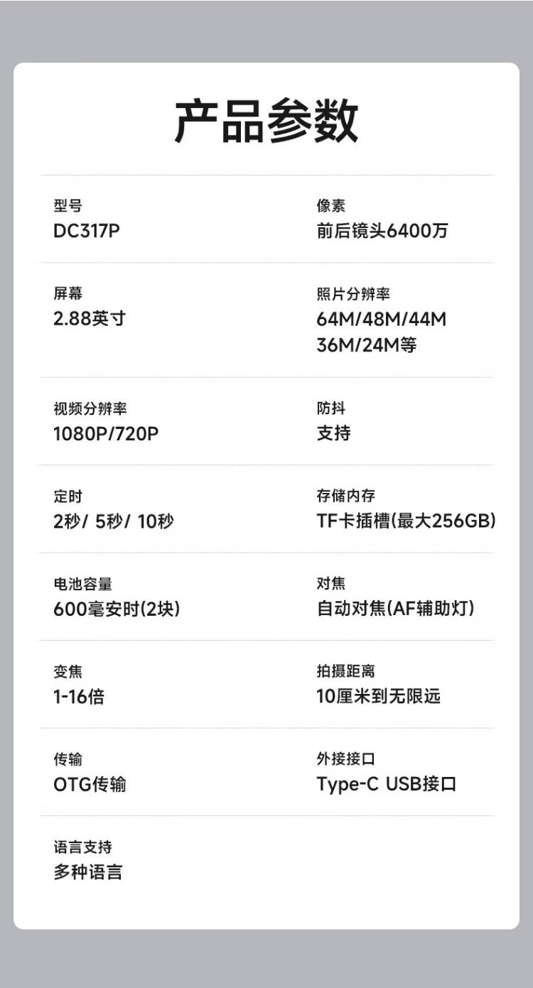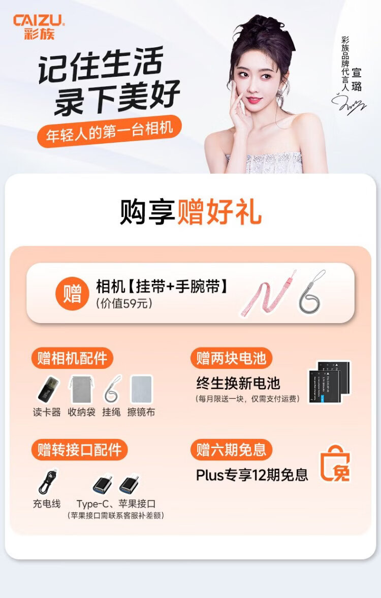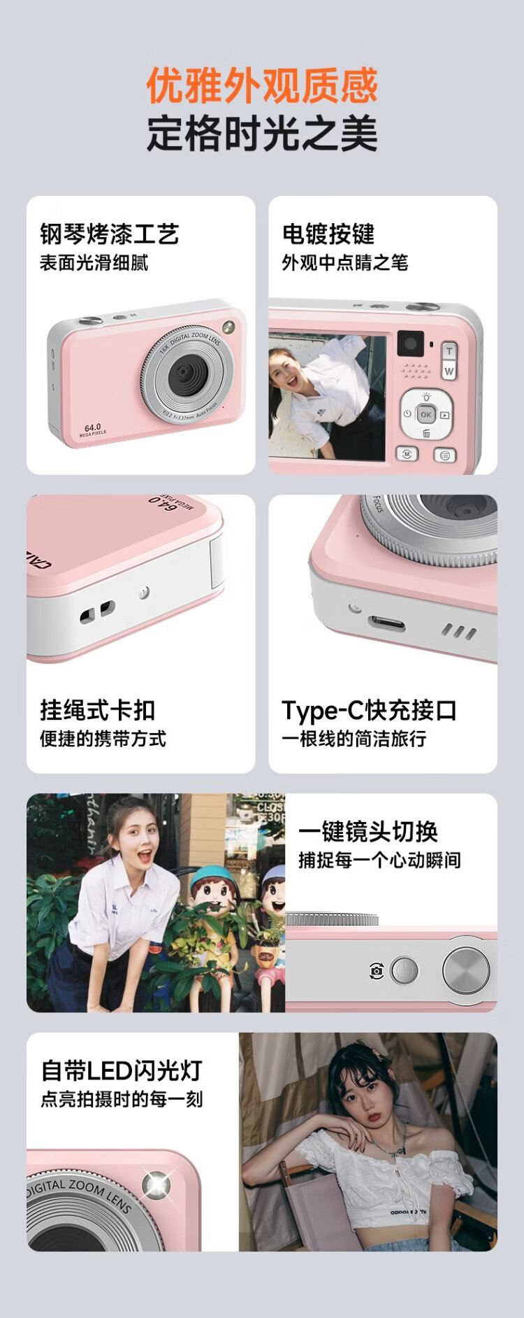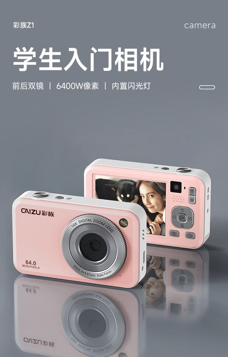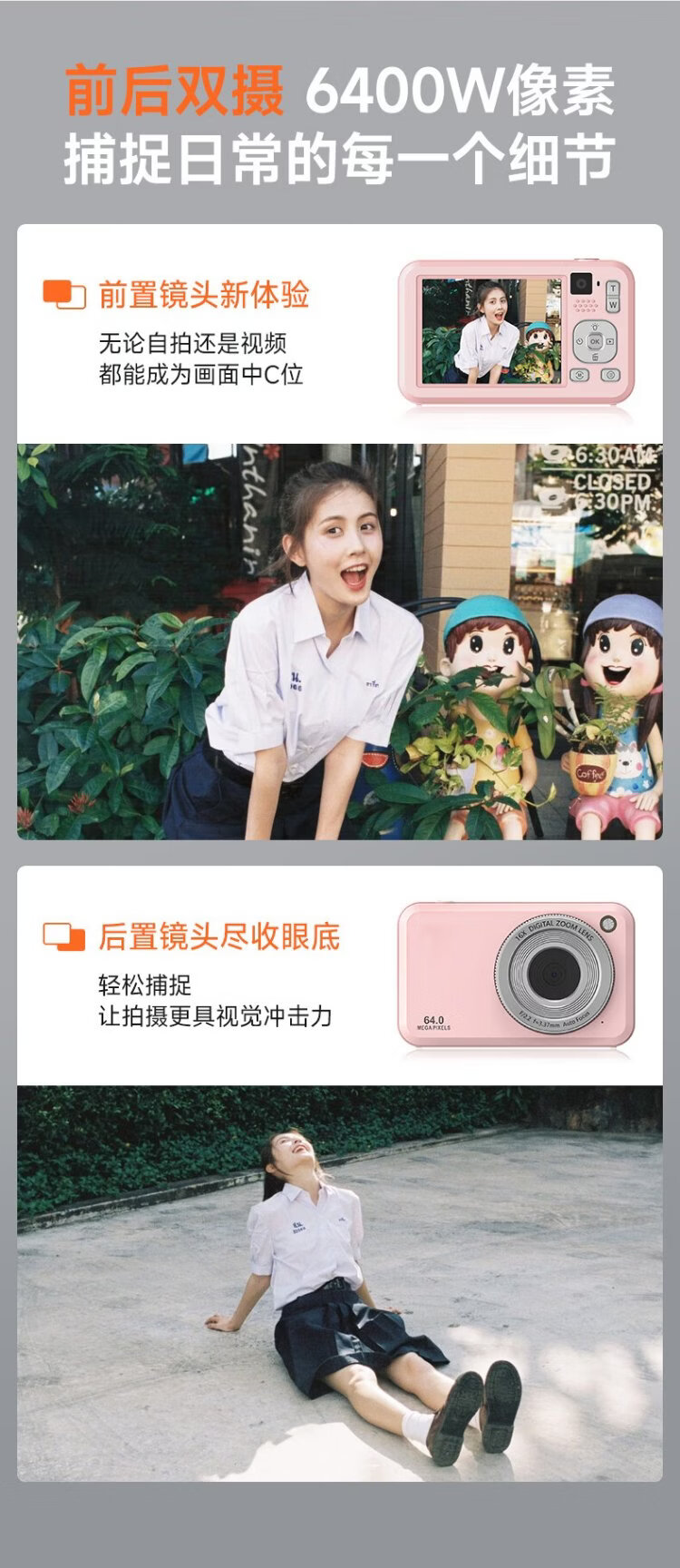 CAIZU Z1 dual camera lens 6400W pixel digital camera Selfie vlog beauty card machine Student party male and female campus can transfer mobile phone to replace CCD camera birthday gift