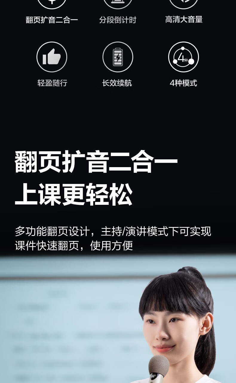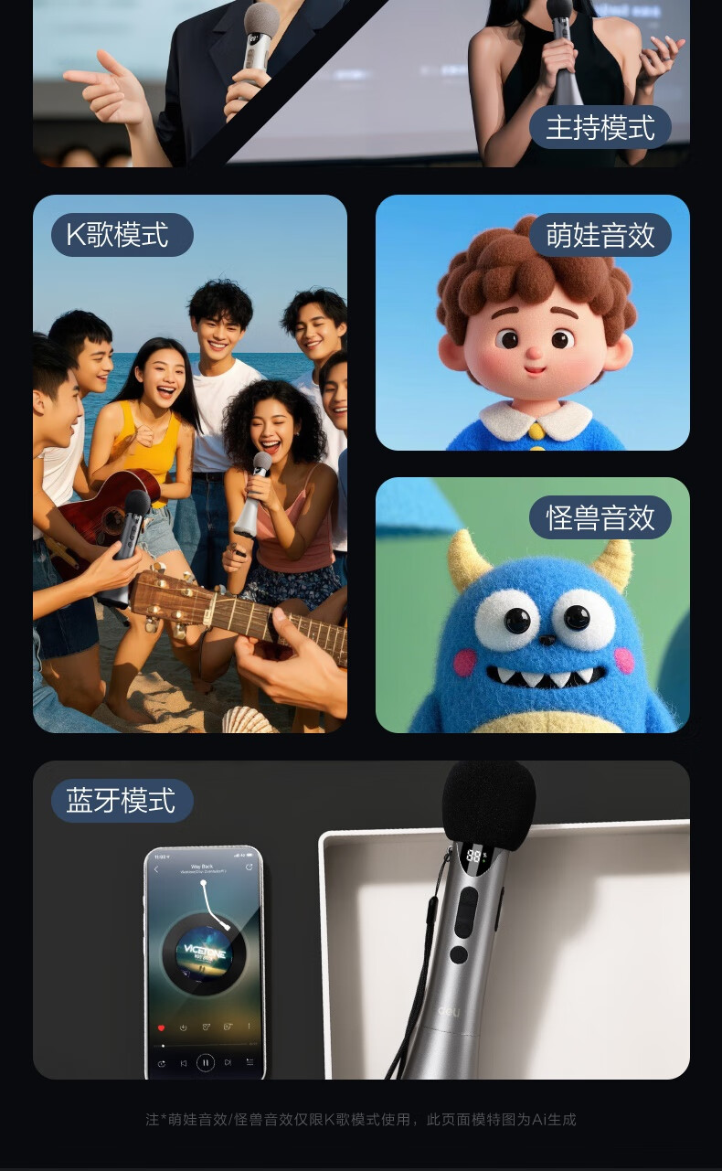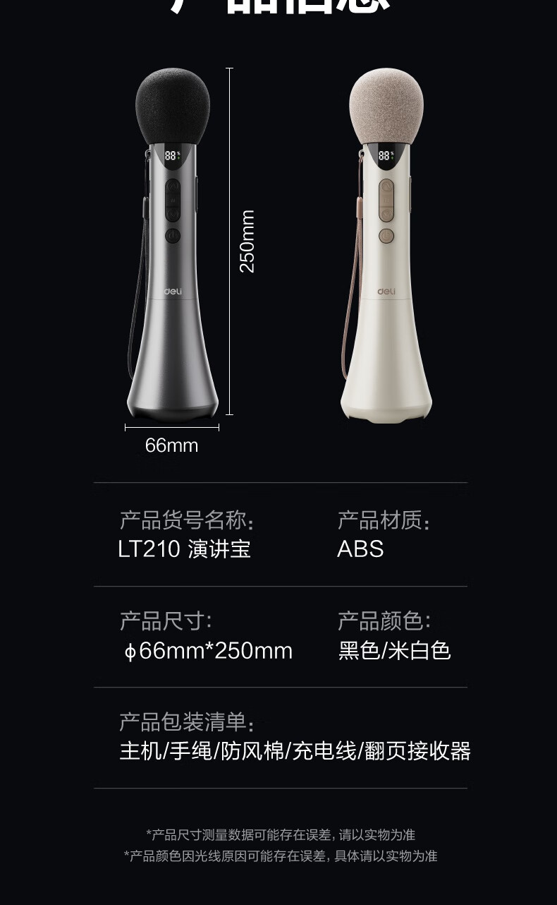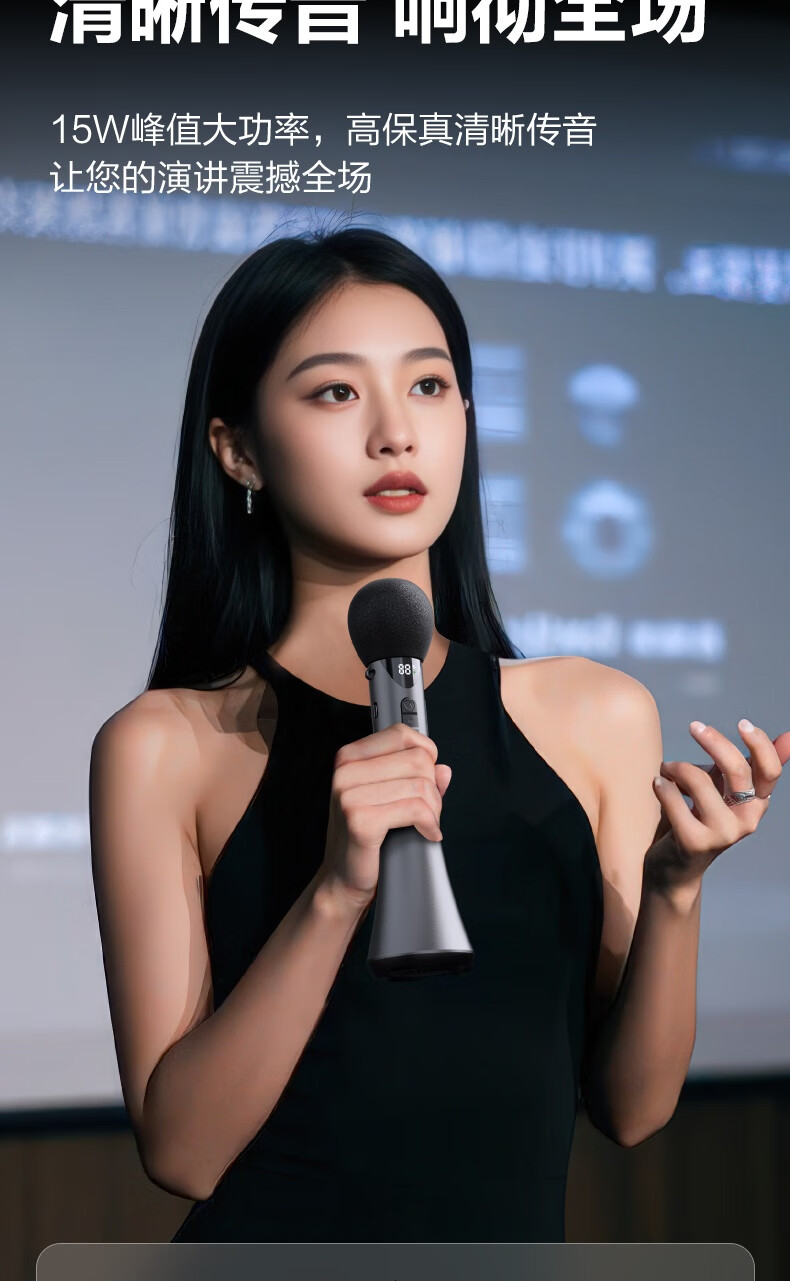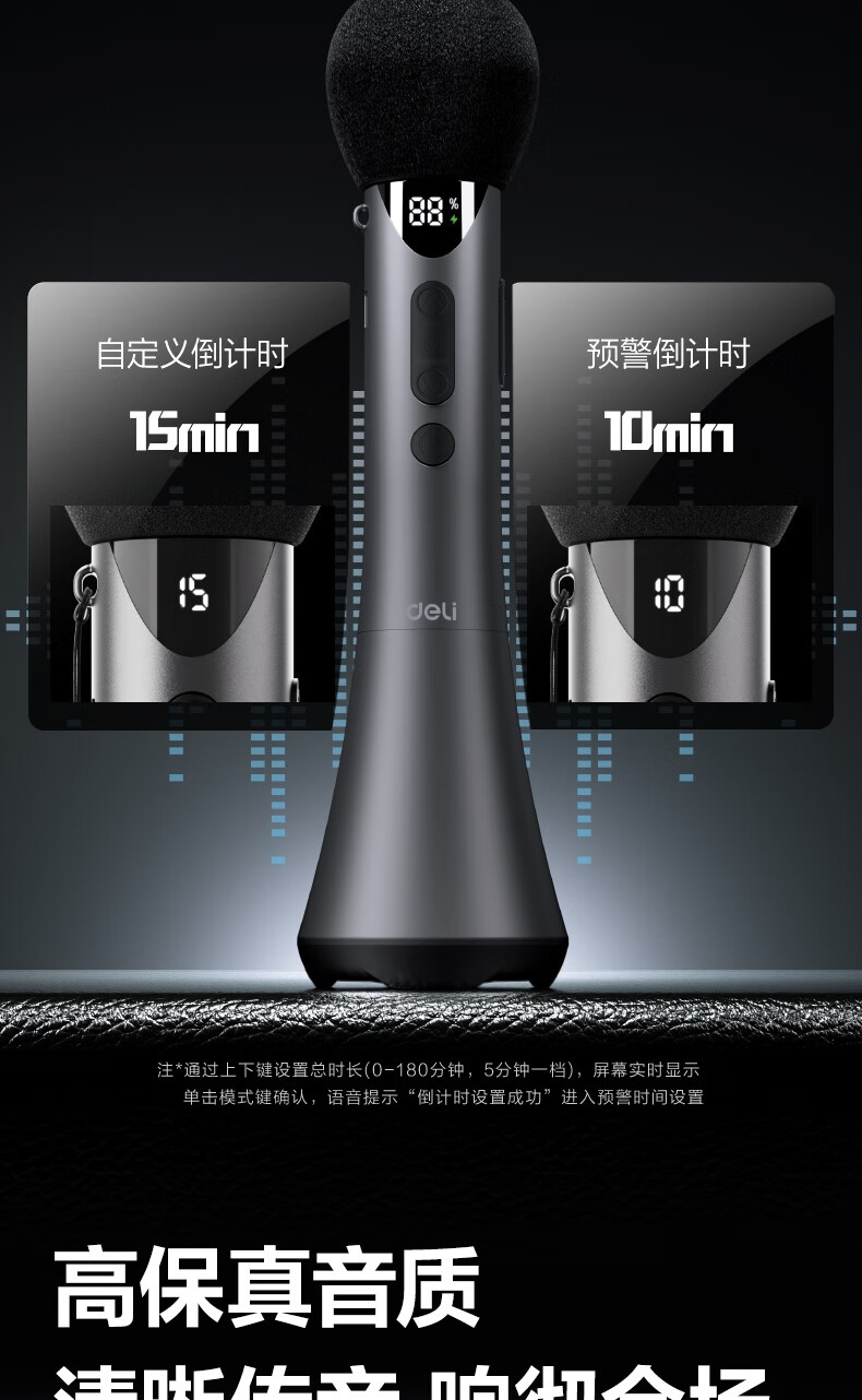 Deli 15w high power karaoke microphone audio integrated handheld microphone wireless little bee amplifier speaker teaching tour guide speech microphone teacher birthday gift black