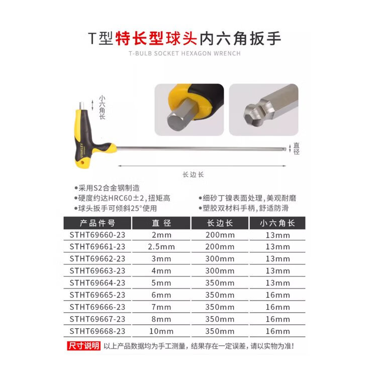 Stanley (STANLEY) household hexagonal wrench T handle ball head extended hexagonal wrench 2mm 200mmSTHT69660-23