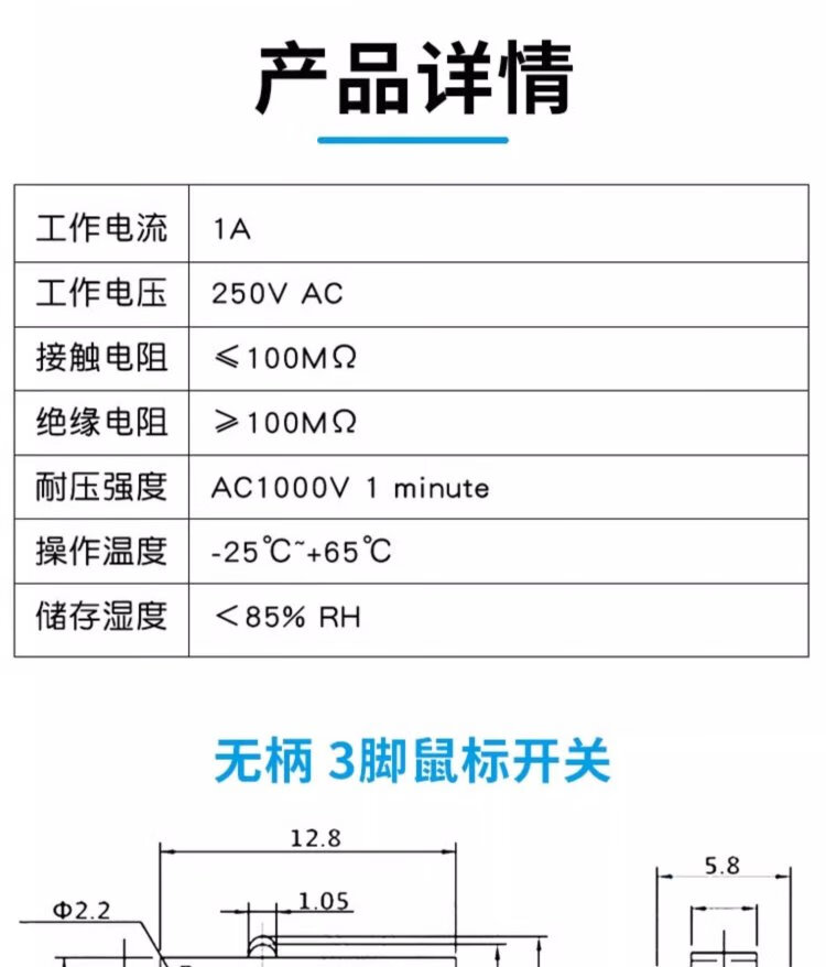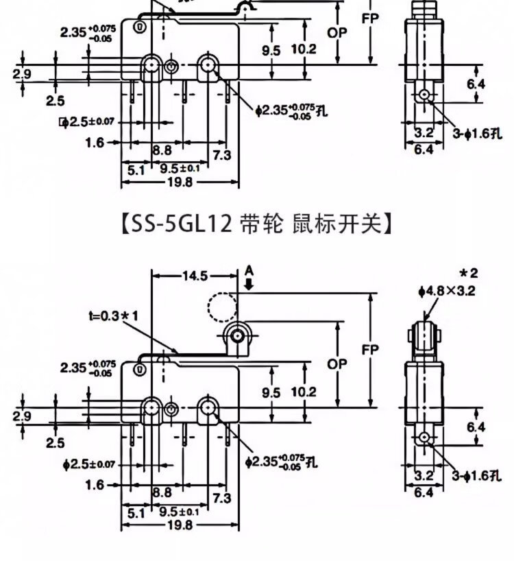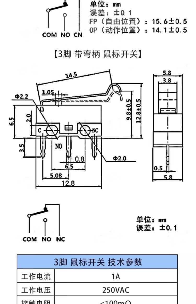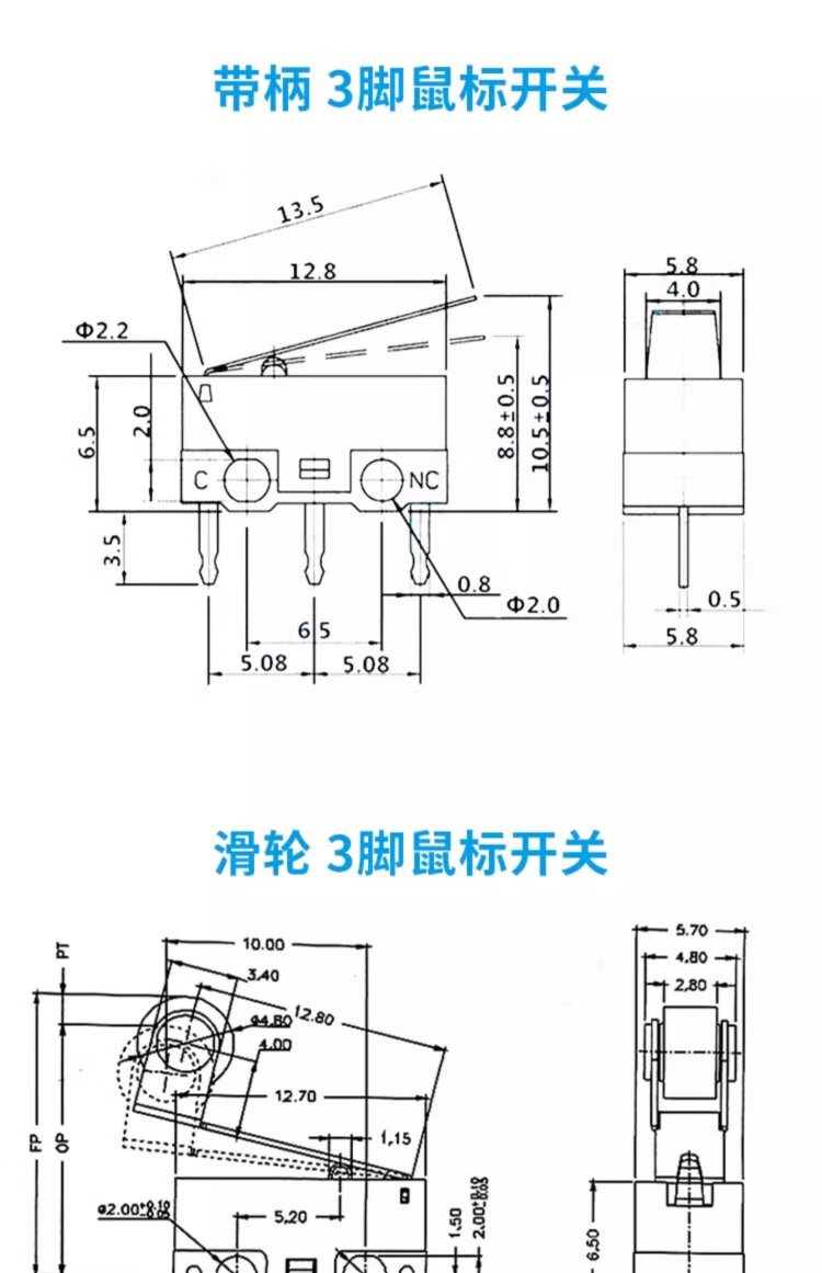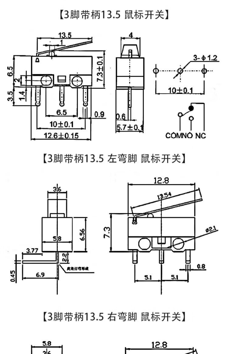 Kissi mouse switch handleless three-legged handle roller 1A small button left and right curved feet straight feet straight handle curved handle micro switch KW11-N pulley (10 pieces)