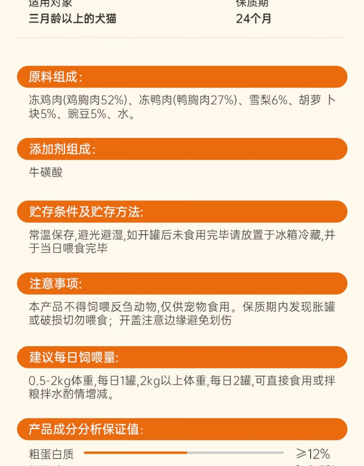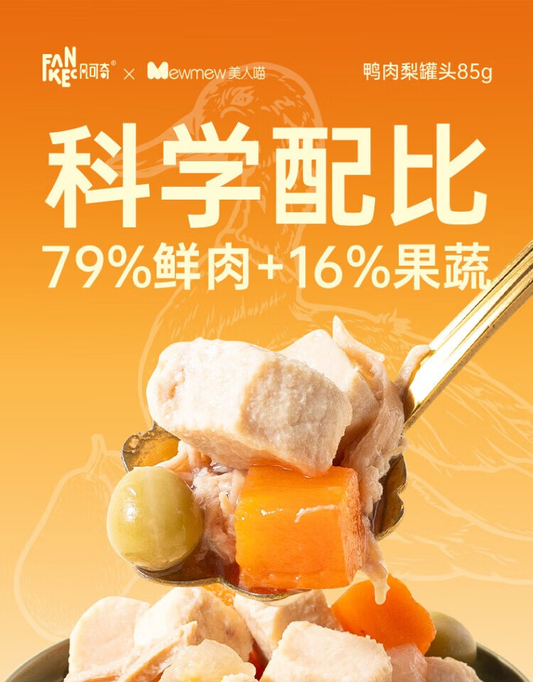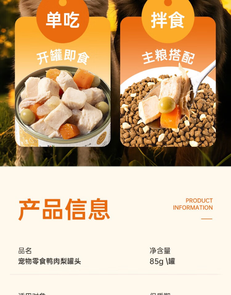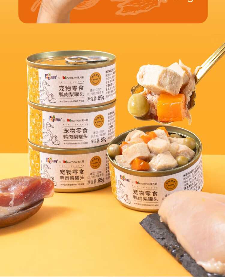 Fankeqi dog snacks, canned dog snacks, small, medium and large dogs, young adult dogs, general mixed food, early adopter, canned duck meat and pear 85g