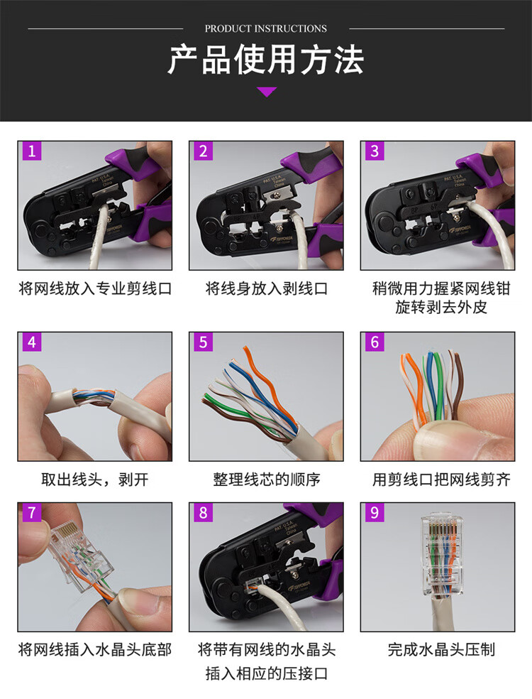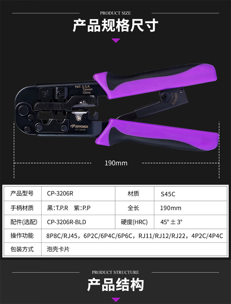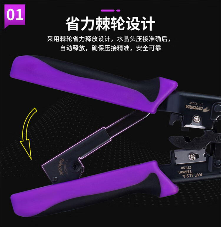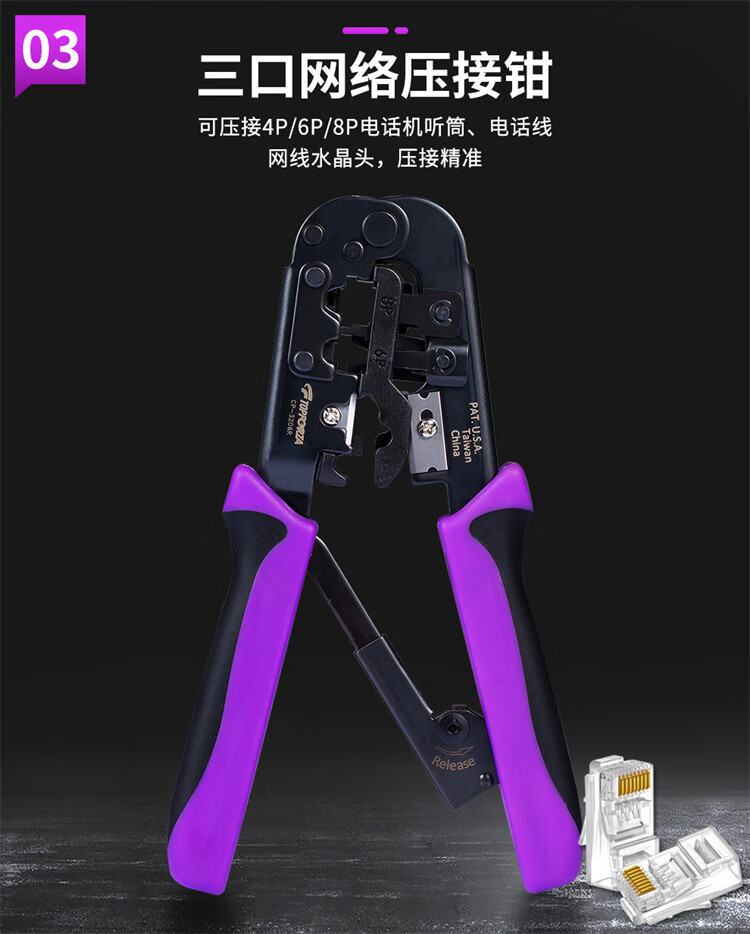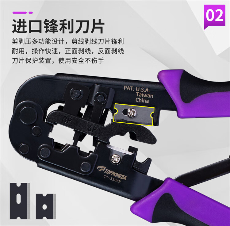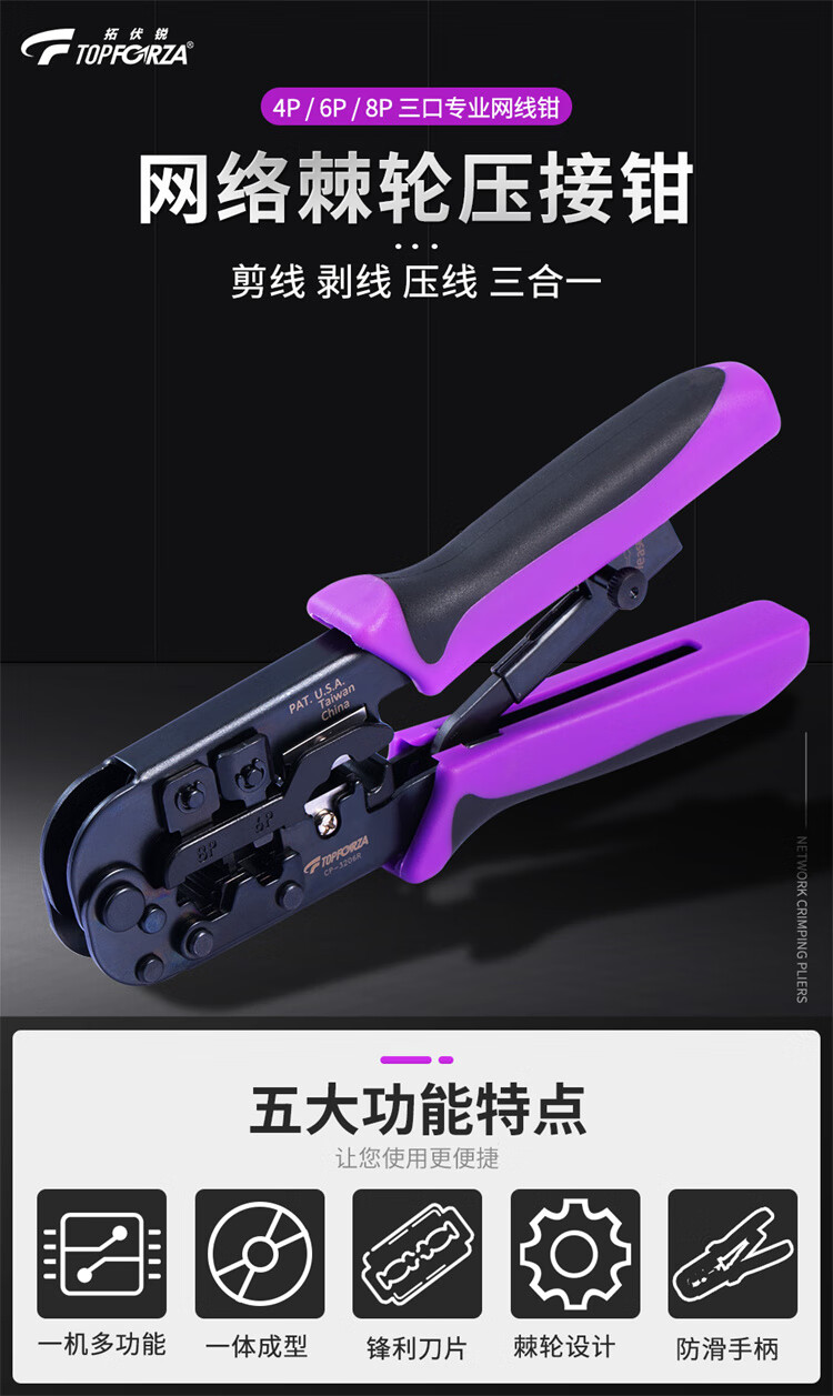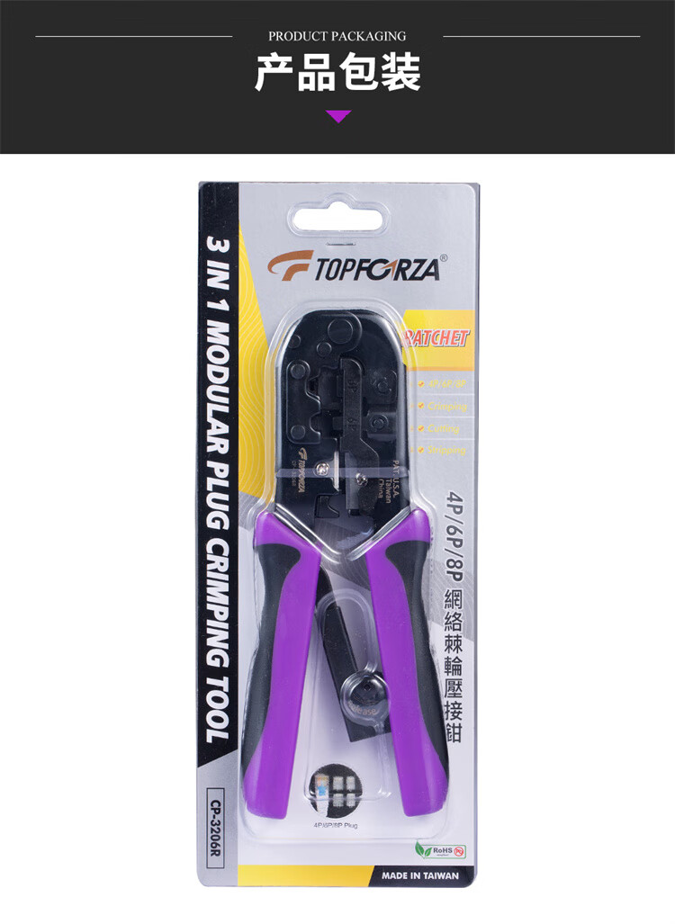 TOPFORZA imported network cable pliers professional-grade crystal head crimping pliers Category 6 three-port network crimping pliers CP-3206R