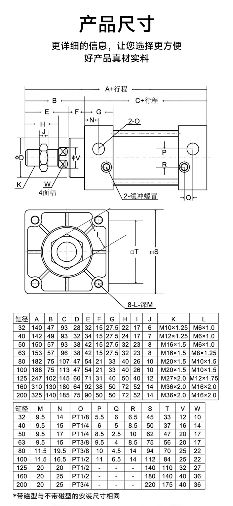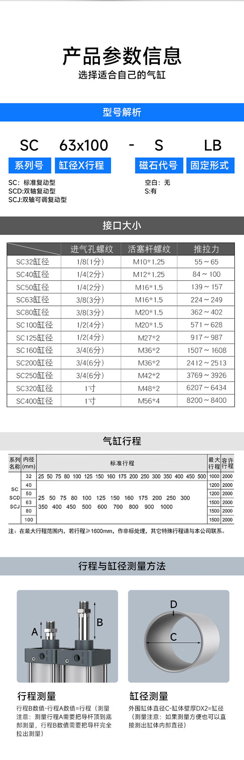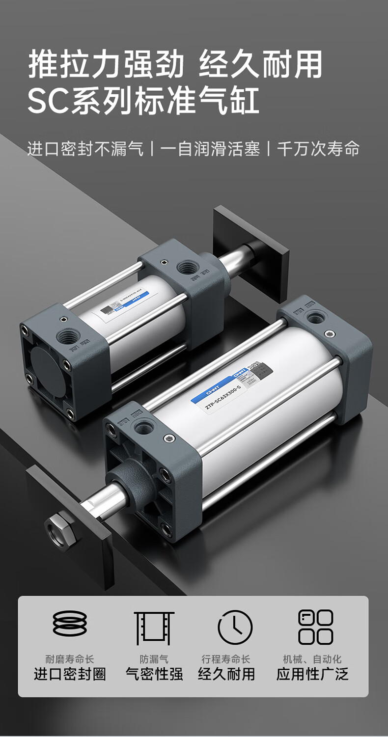 Chint (CHNT) pneumatic standard cylinder SC small large thrust 32 40 63 80 100 bore with magnetic ring SC40X50-S
