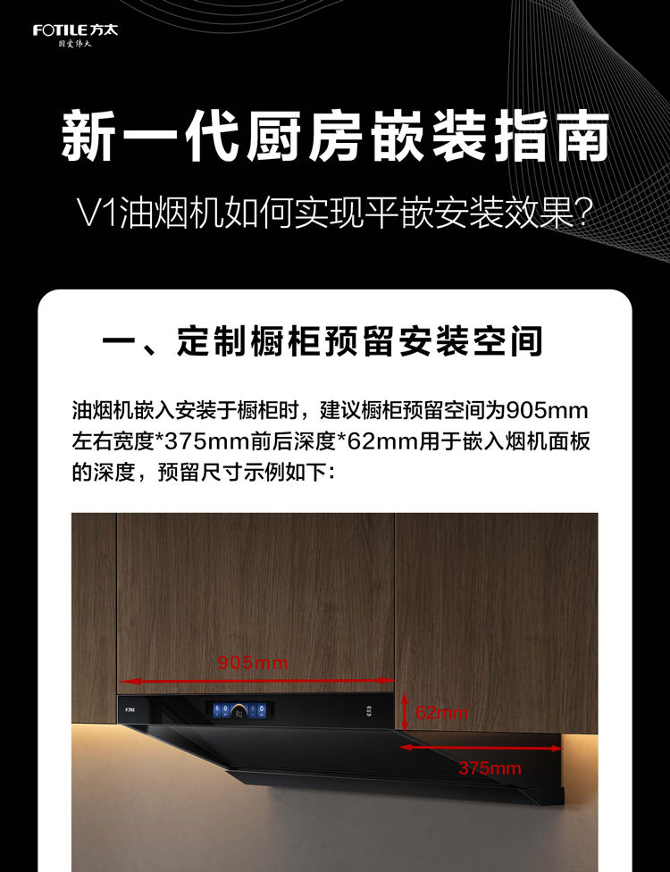 FOTILE V1S-G+03-TEK20 mainly recommends high-quality smoke stove set, 28 air volume flat-mounted extraction range hood + timed dry-burning prevention upgraded natural gas stove, trade-in