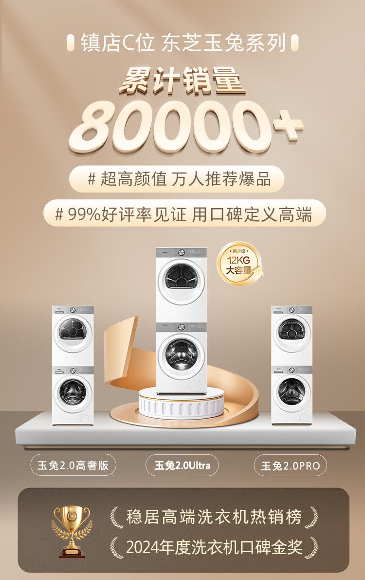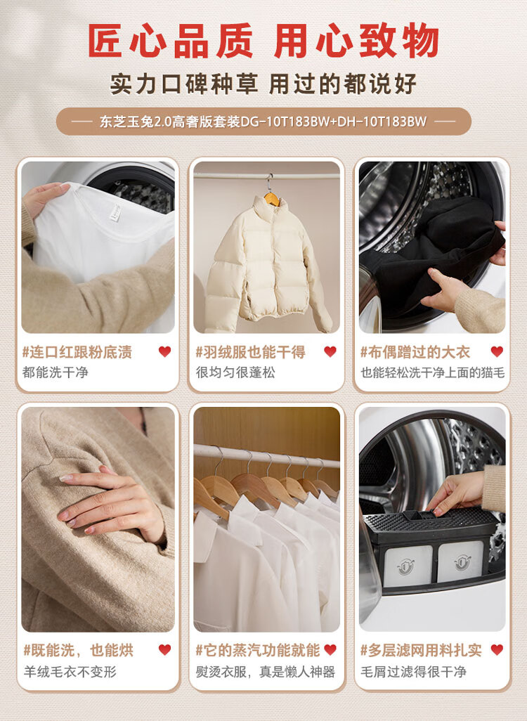 TOSHIBA Jade Rabbit 2.0 High Luxury Edition Washing and Drying Set 10kg Drum Fully Automatic Washing Machine Home + Variable Frequency Heat Pump Dryer UFB Ultra Micro Bubble DG-10T183BW+T183BW