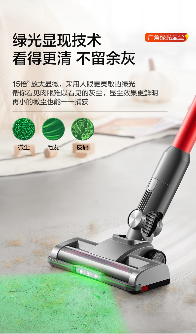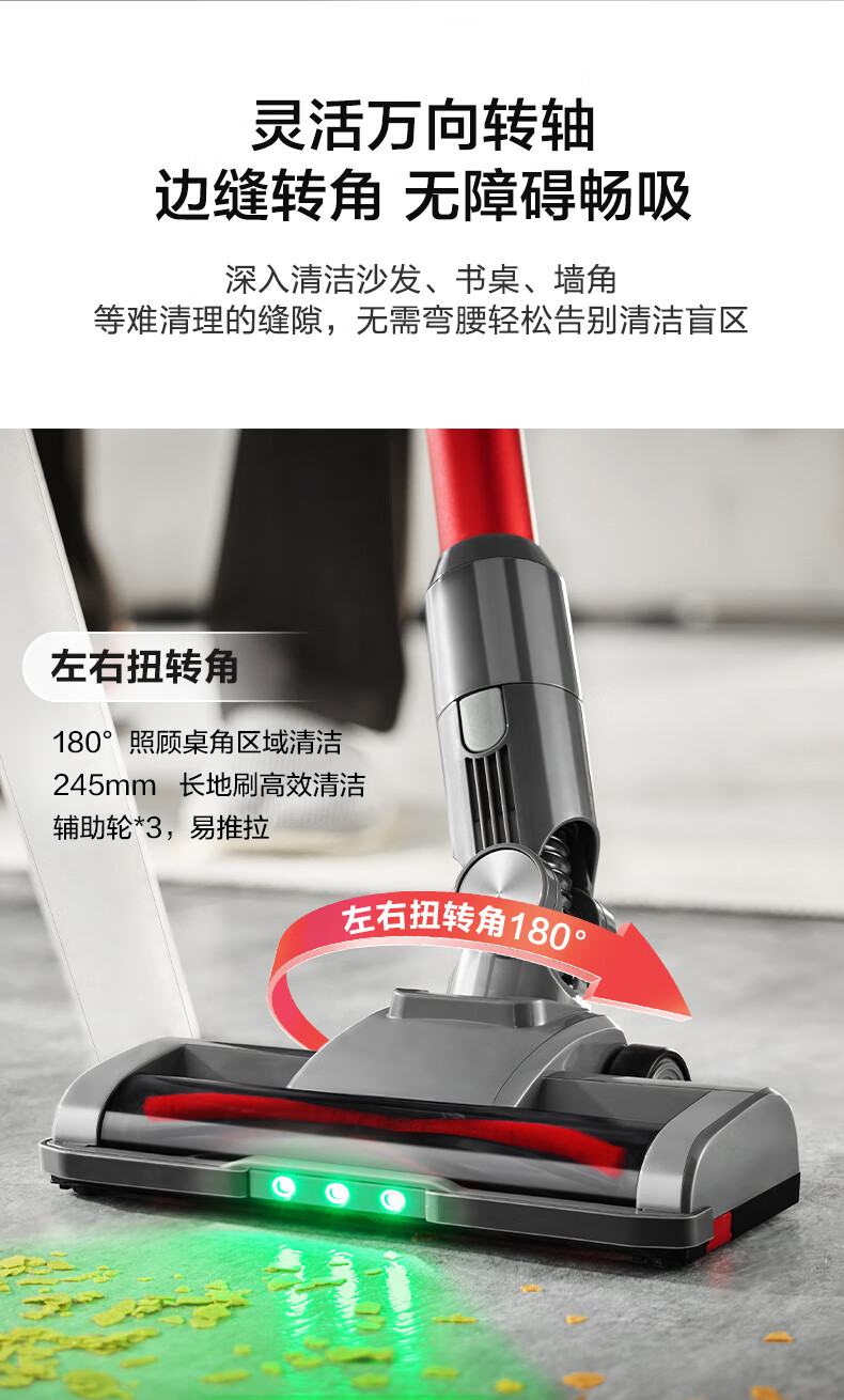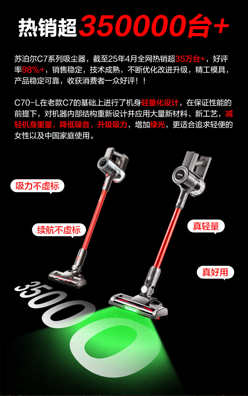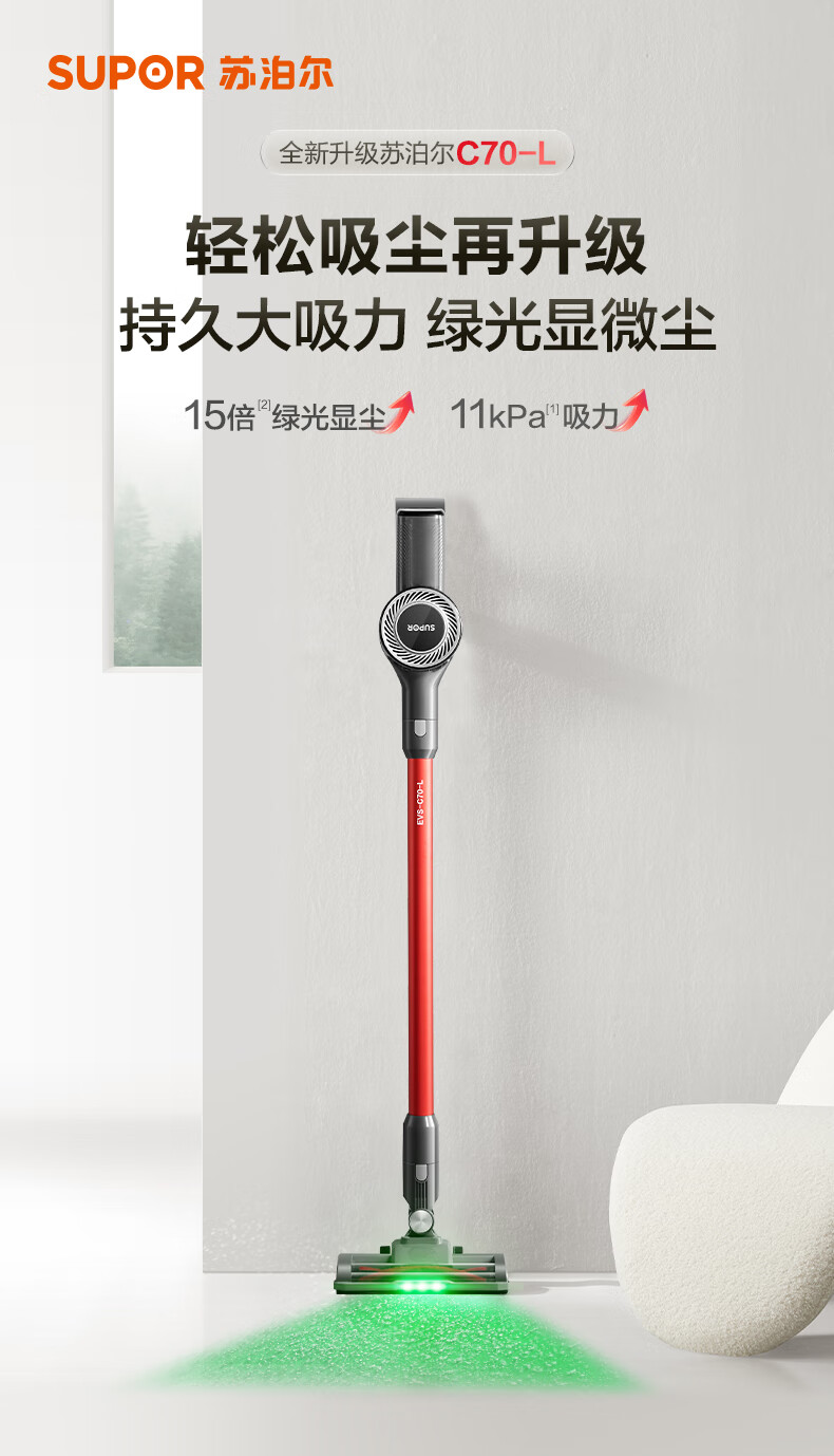 Supor vacuum cleaner household large suction wireless handheld lightweight green light dust display high-power vacuum cleaner carpet pet suction cat hair C70-L holiday gift