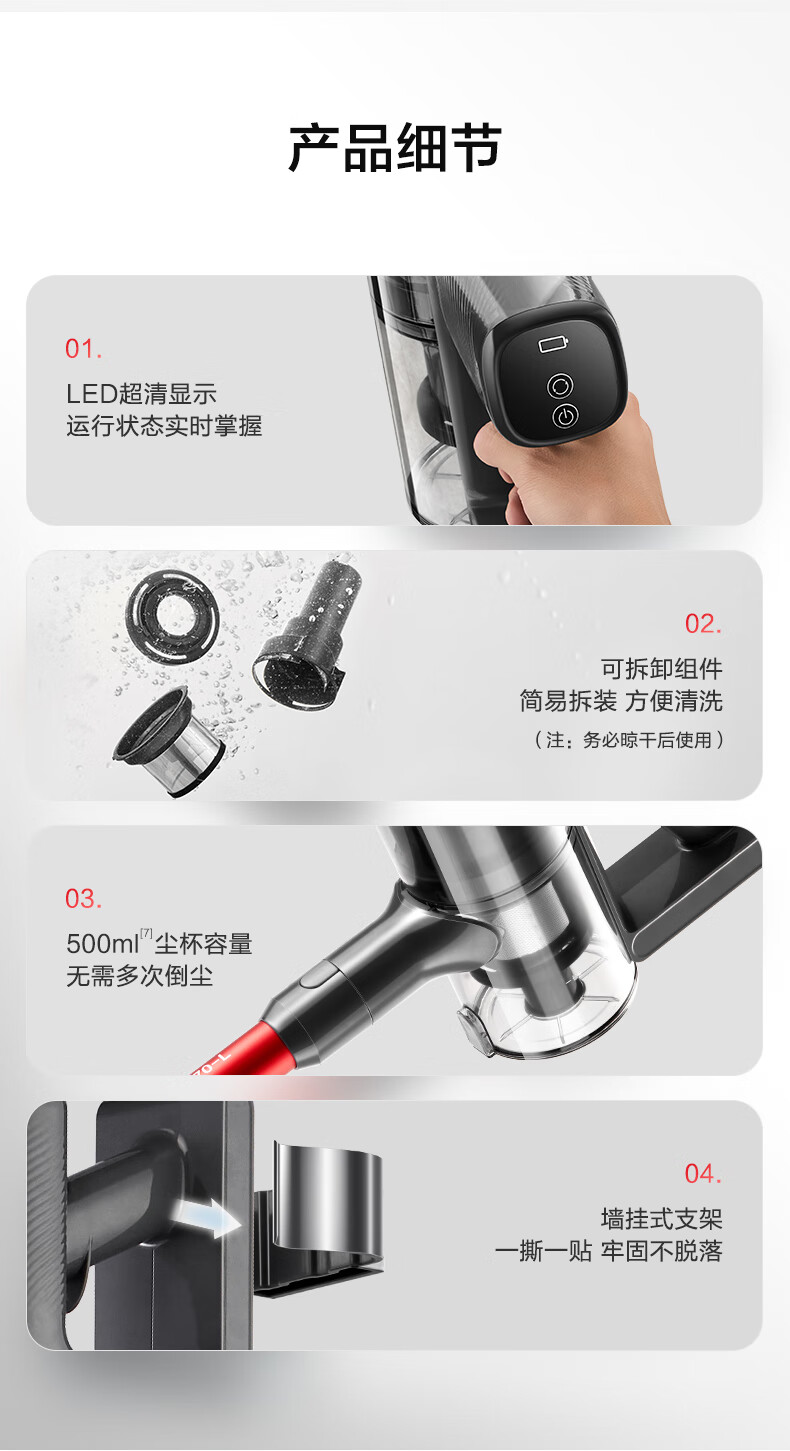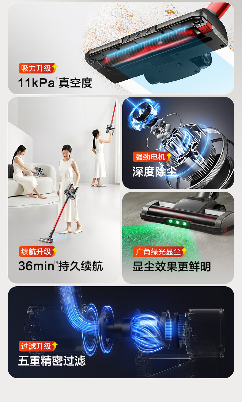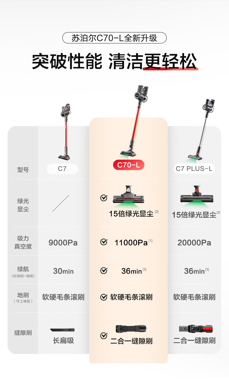 Supor vacuum cleaner household large suction wireless handheld lightweight green light dust display high-power vacuum cleaner carpet pet suction cat hair C70-L holiday gift