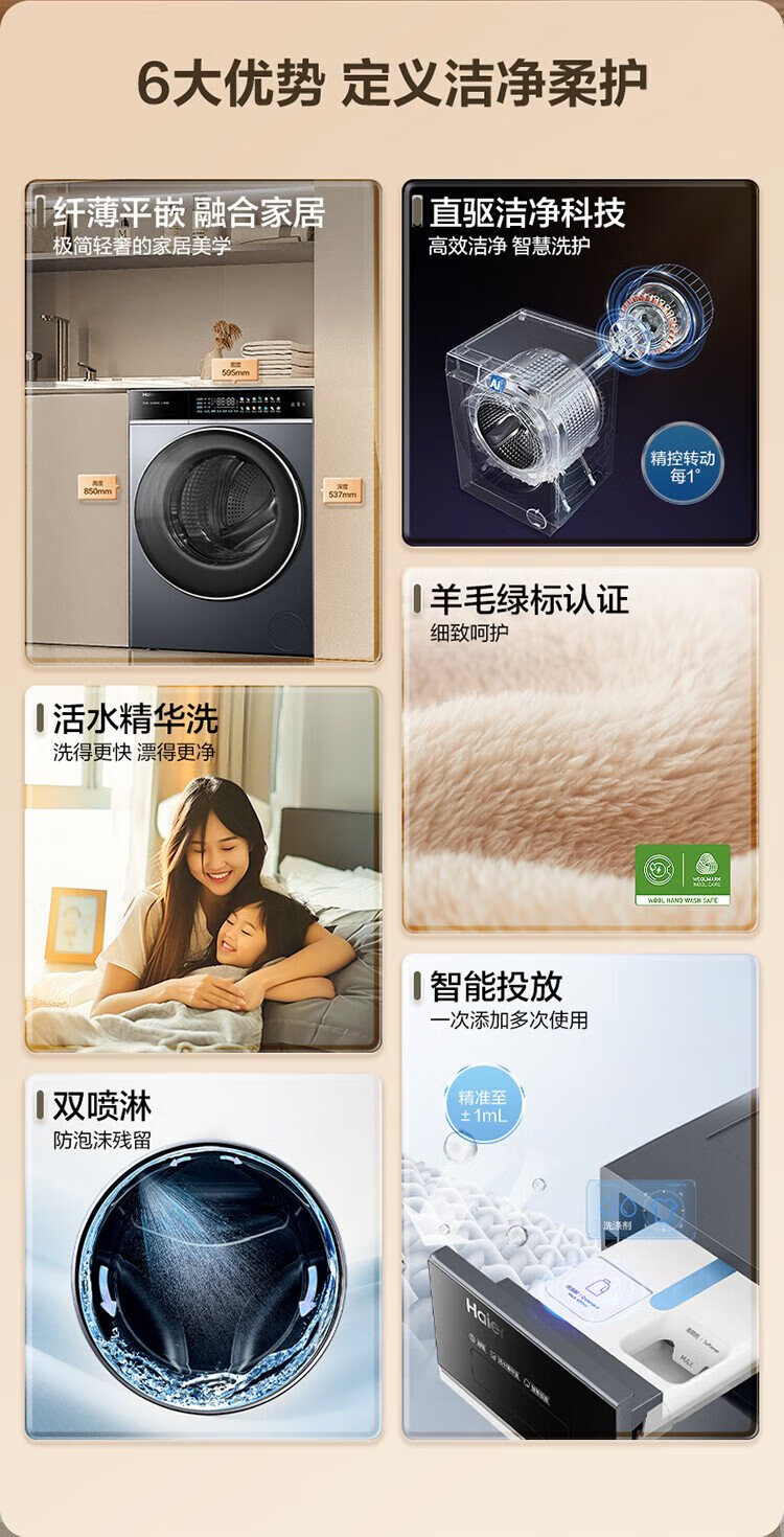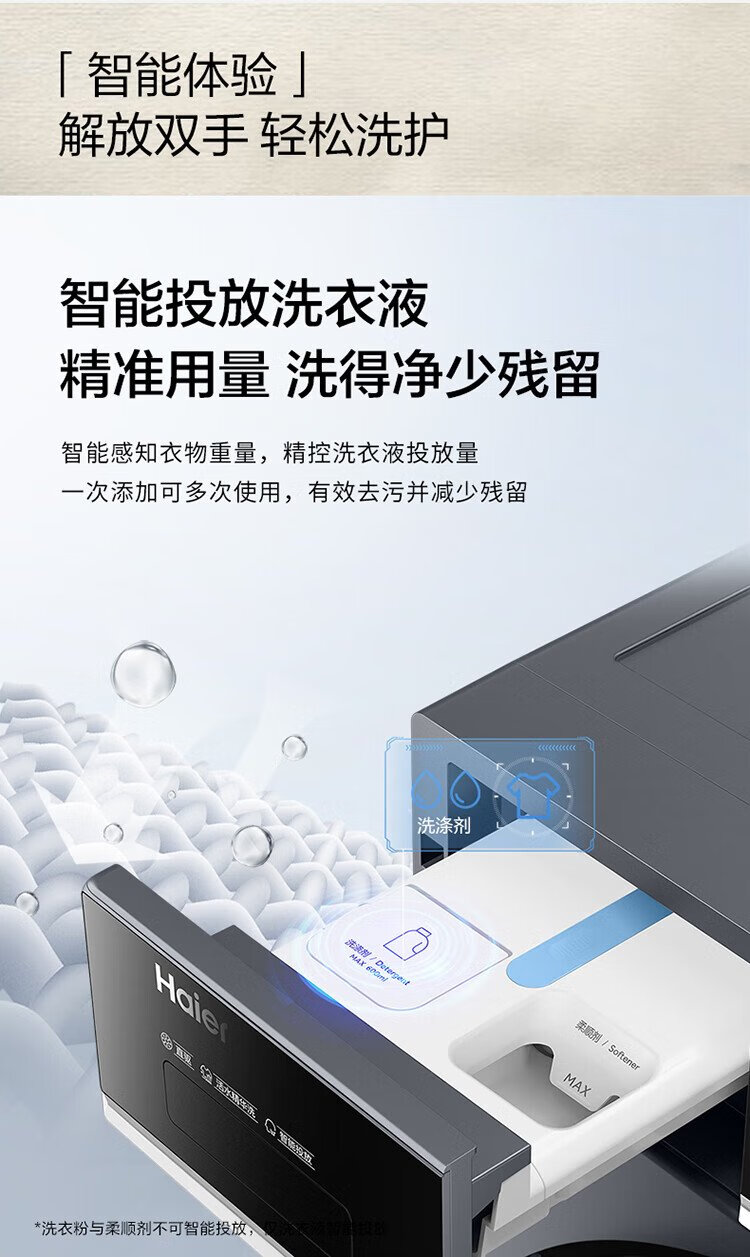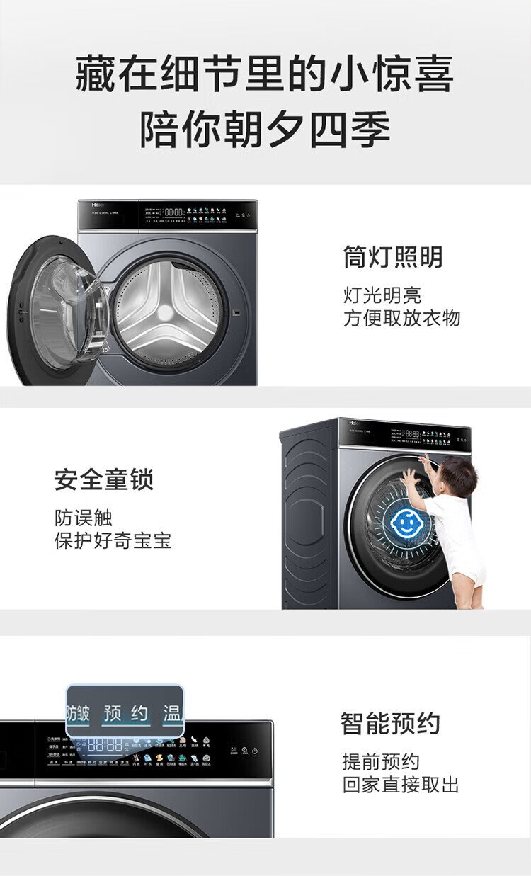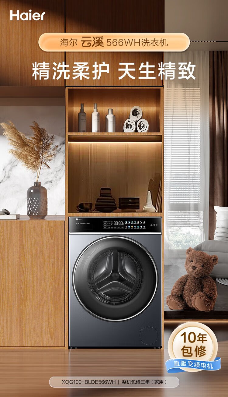 Haier 10KG direct drive variable frequency drum washing machine, living water essence washing, ultra-thin embedded, one-click smart washing XQG100-BLDE566WH