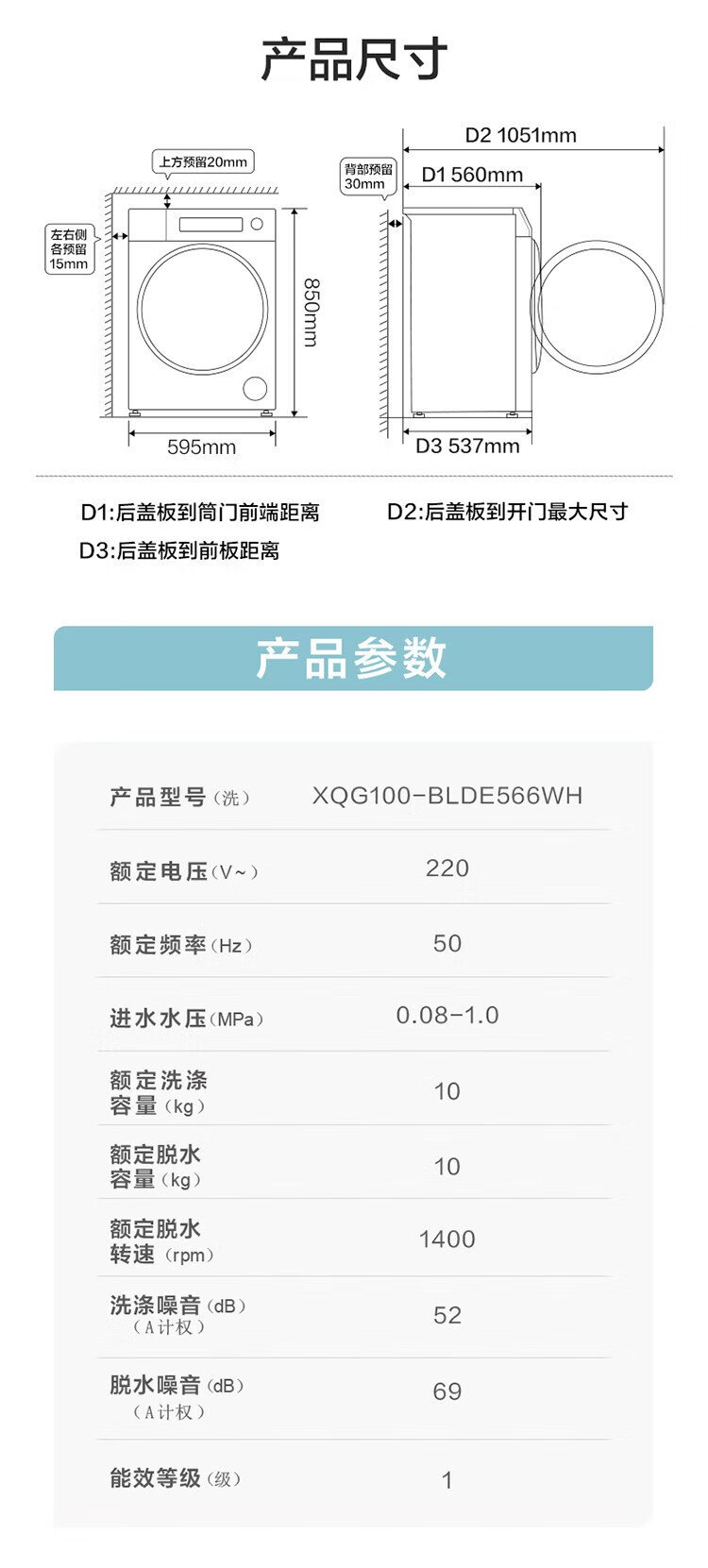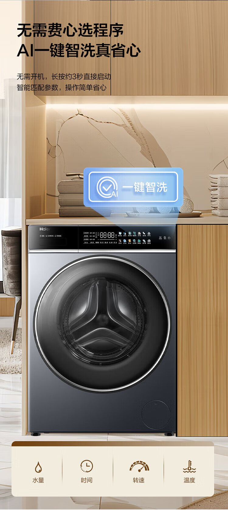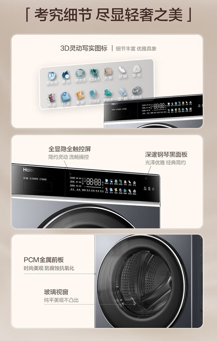 Haier 10KG direct drive variable frequency drum washing machine, living water essence washing, ultra-thin embedded, one-click smart washing XQG100-BLDE566WH