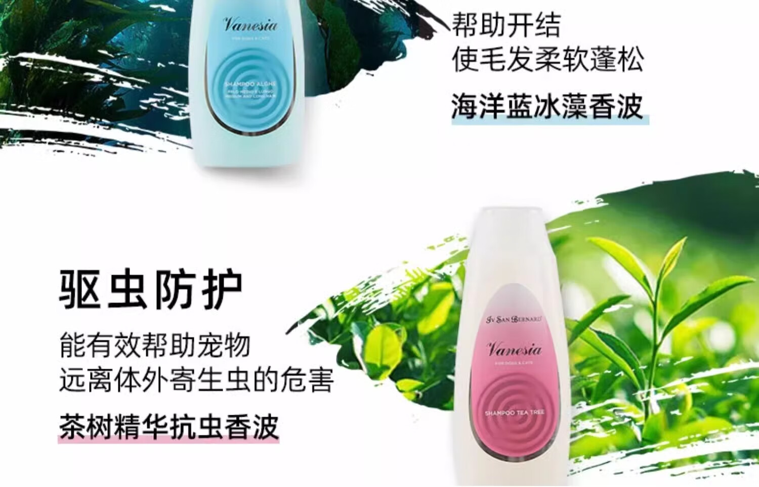 Isana imported isb pet shower gel for dogs and cats, fluffy and smooth, Vancia ocean blue ice algae shampoo 300ml