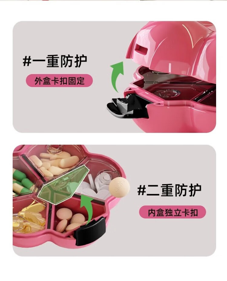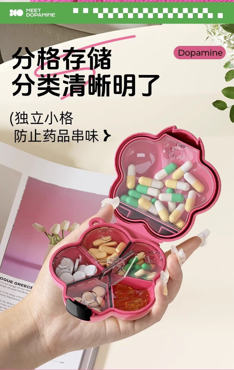 Fan Yejia Dopamine Flower Pill Box Portable Storage Medicine Box One-week Sealed Packing and Dispensing Medicine Box