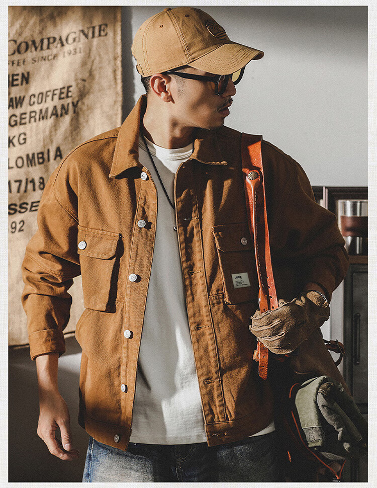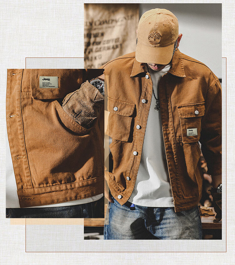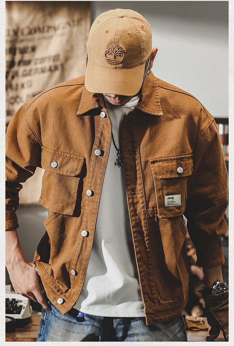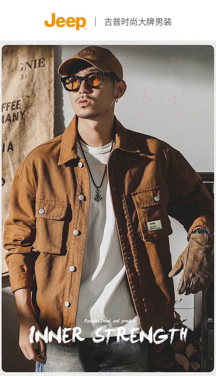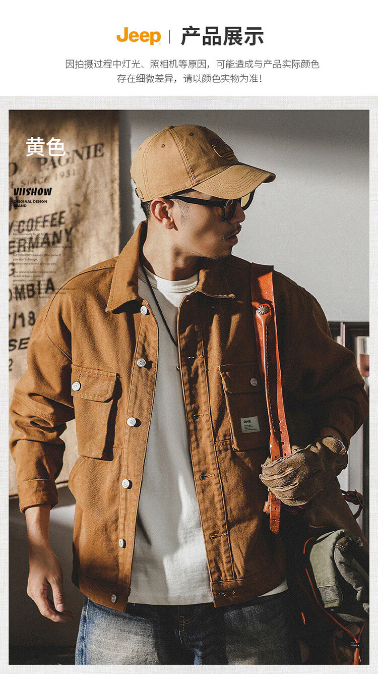 JEEP Jeep Jacket Men's Jacket Autumn and Winter Casual Workwear Loose Lapel Cotton Clothes Men's Yellow XL