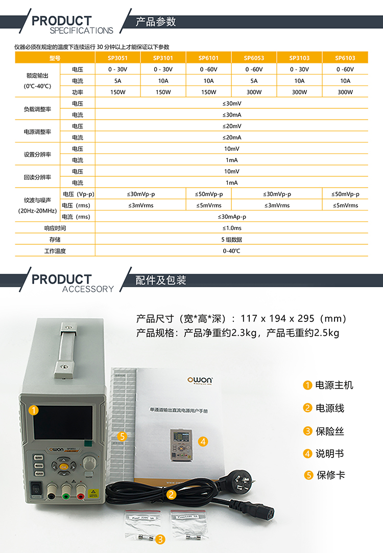 Owon Lilip program-controlled power supply SP6101 DC voltage regulator 150W/60V/10A RS232 host computer programmable