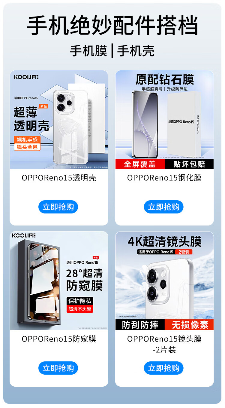 KOOLIFE is suitable for OPPO Reno15 mobile phone case protective cover reno15 mobile phone case lens all-inclusive simple skin-friendly transparent soft shell fades fingerprints outer back shell
