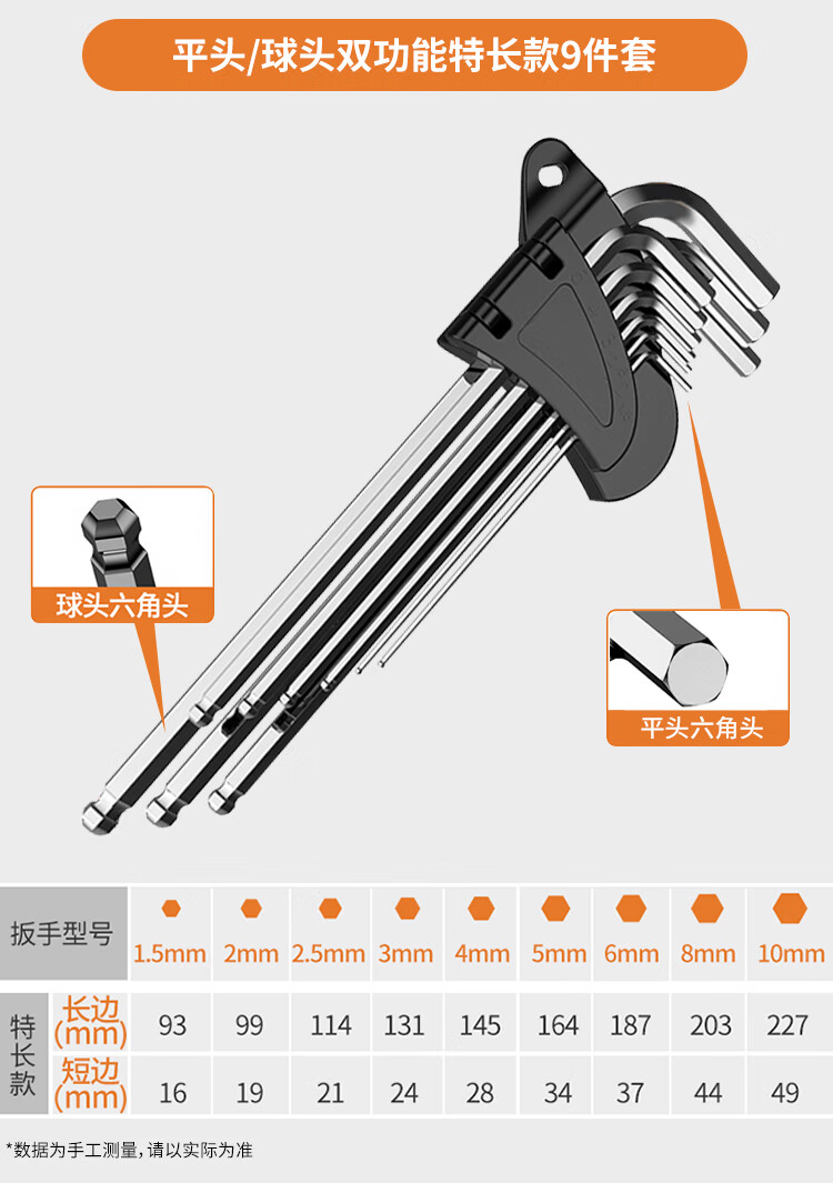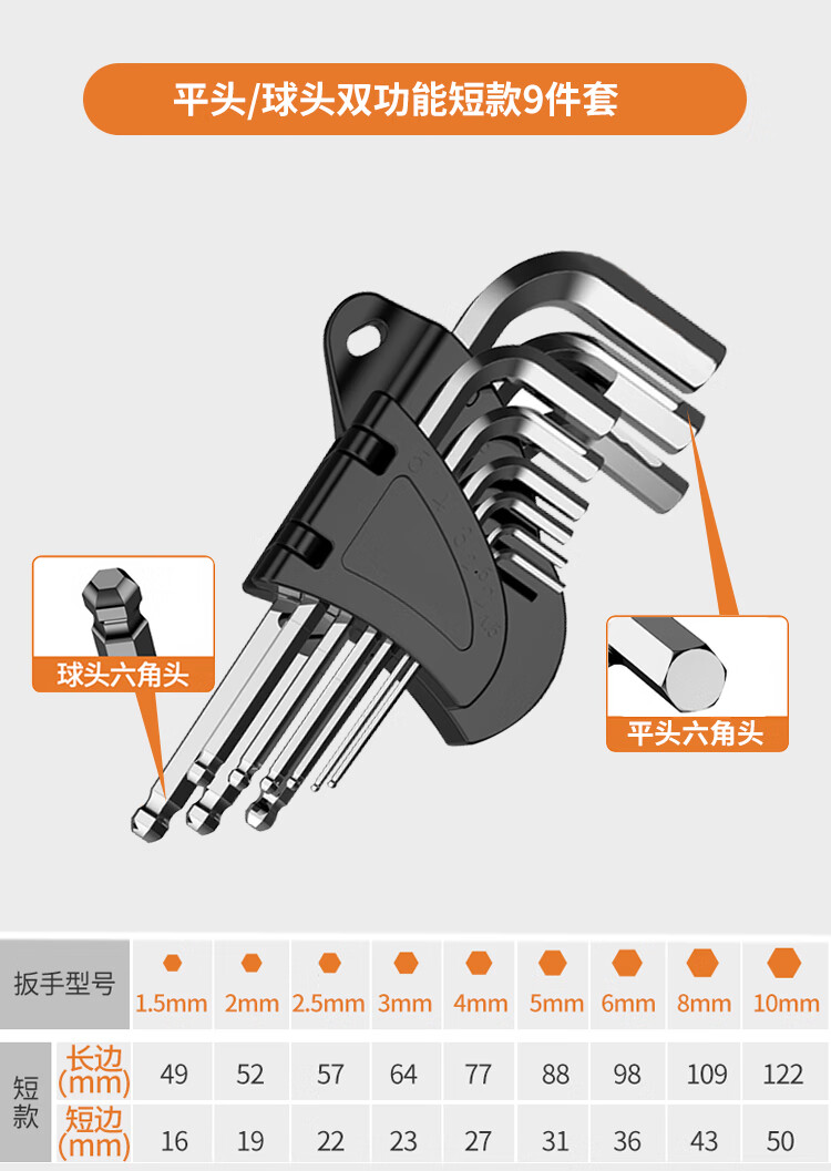 No.1 Factory electroplated silver hexagonal hexagonal screwdriver wrench long ball head 9-piece set
