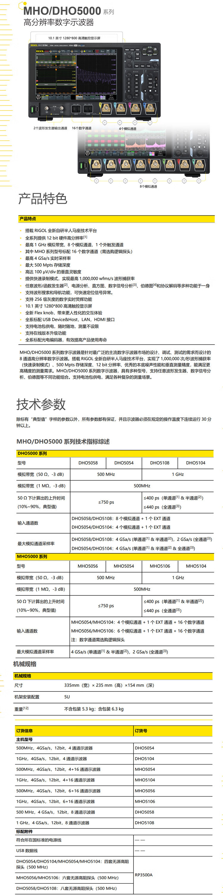 RIGOL Puyuan 1GHz bandwidth 12bit digital oscilloscope MHO5104