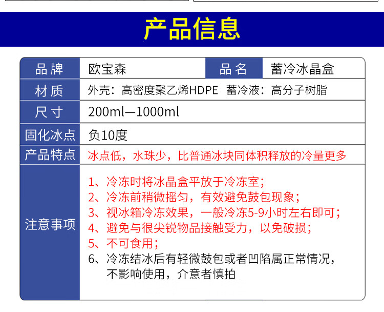 Opelson 4 pack 120ml ice crystal box blue ice stall commercial air conditioning fan universal air cooler ice plate ice row refrigeration