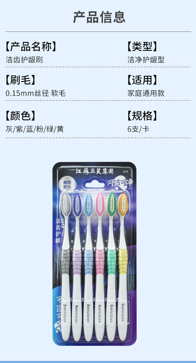Kejiekejing adult soft-bristle toothbrush 6 pieces recommended for family sharing Gum protection rounded filaments care for sensitive and deep cleaning