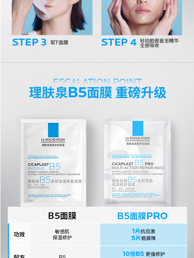 La Roche-Posay's new B5 mask PRO multi-effect intensive moisturizing and repairing 20 tablets, hydrating, moisturizing, first-aid and repairing, on clearance.