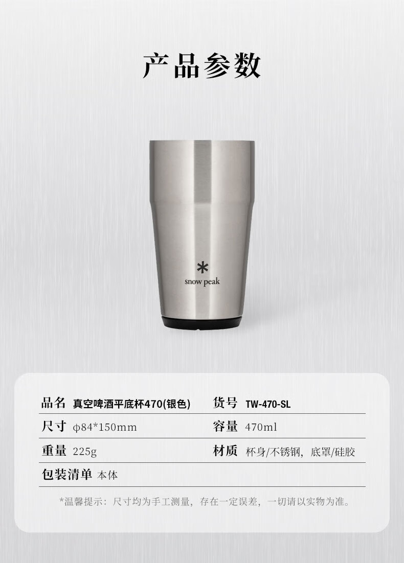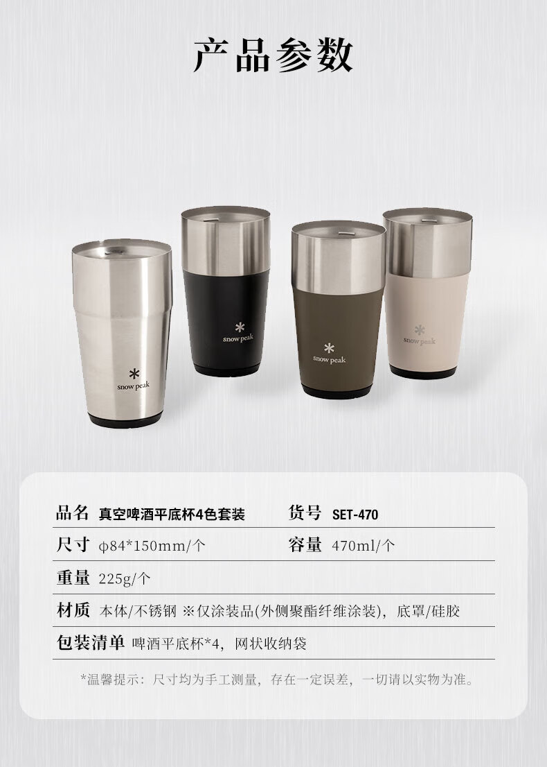 Snow Peak Outdoor Camping Stainless Steel Portable Beer Tea Coffee Cup Tableware TW-470-BK