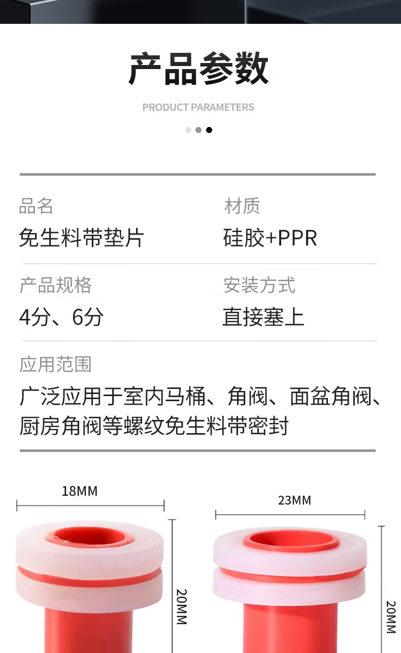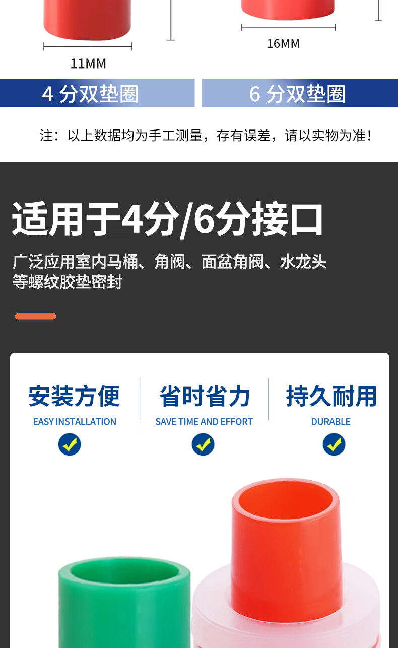 Deqi raw material-free tape gasket, faucet angle valve silicone gasket, raw material-free tape, 4 points + 6 points red (5 pcs each)