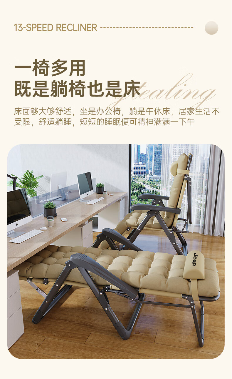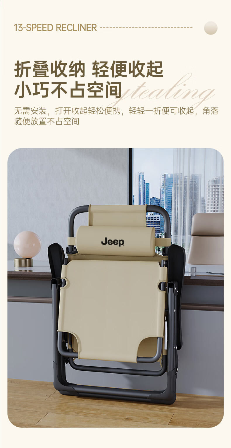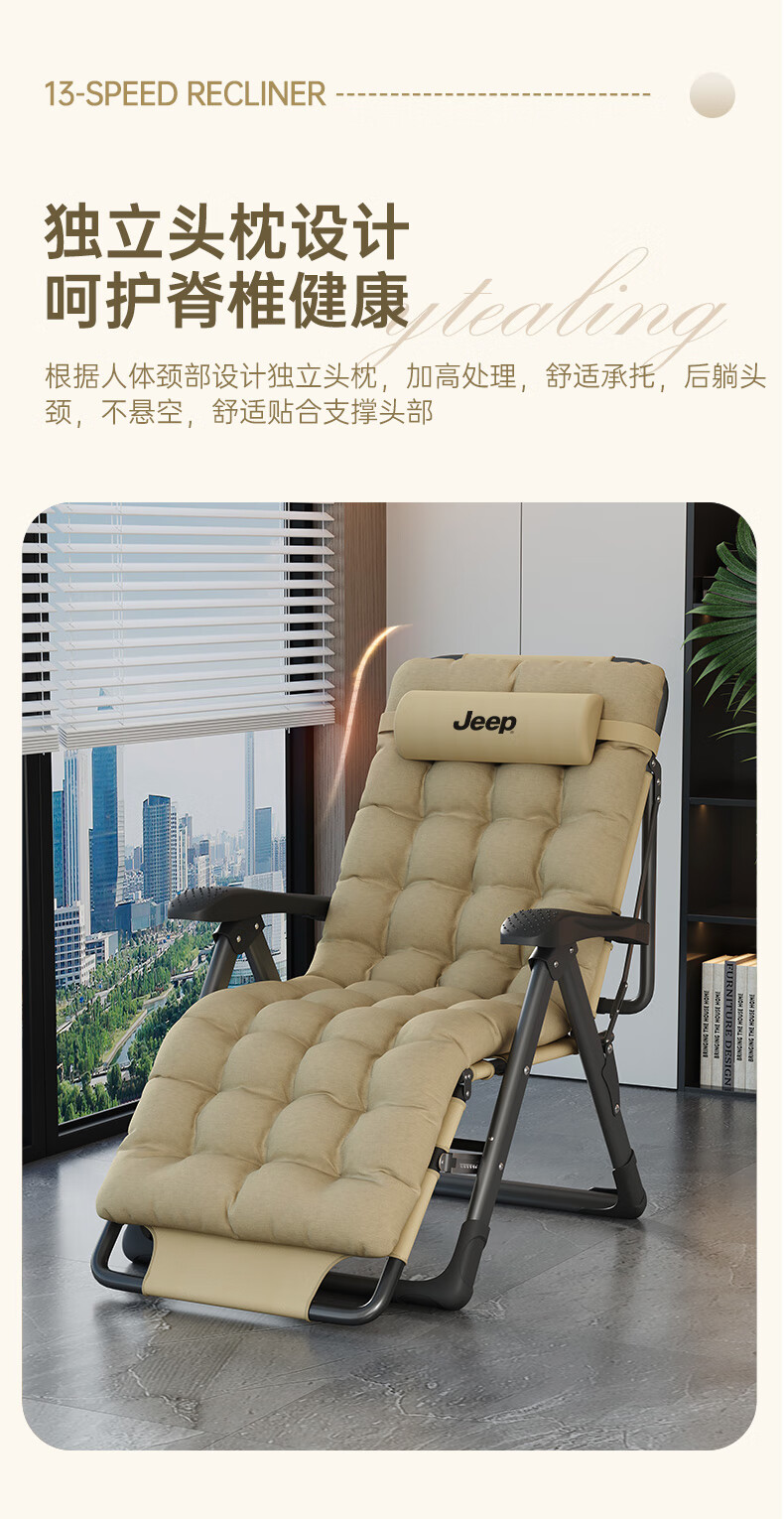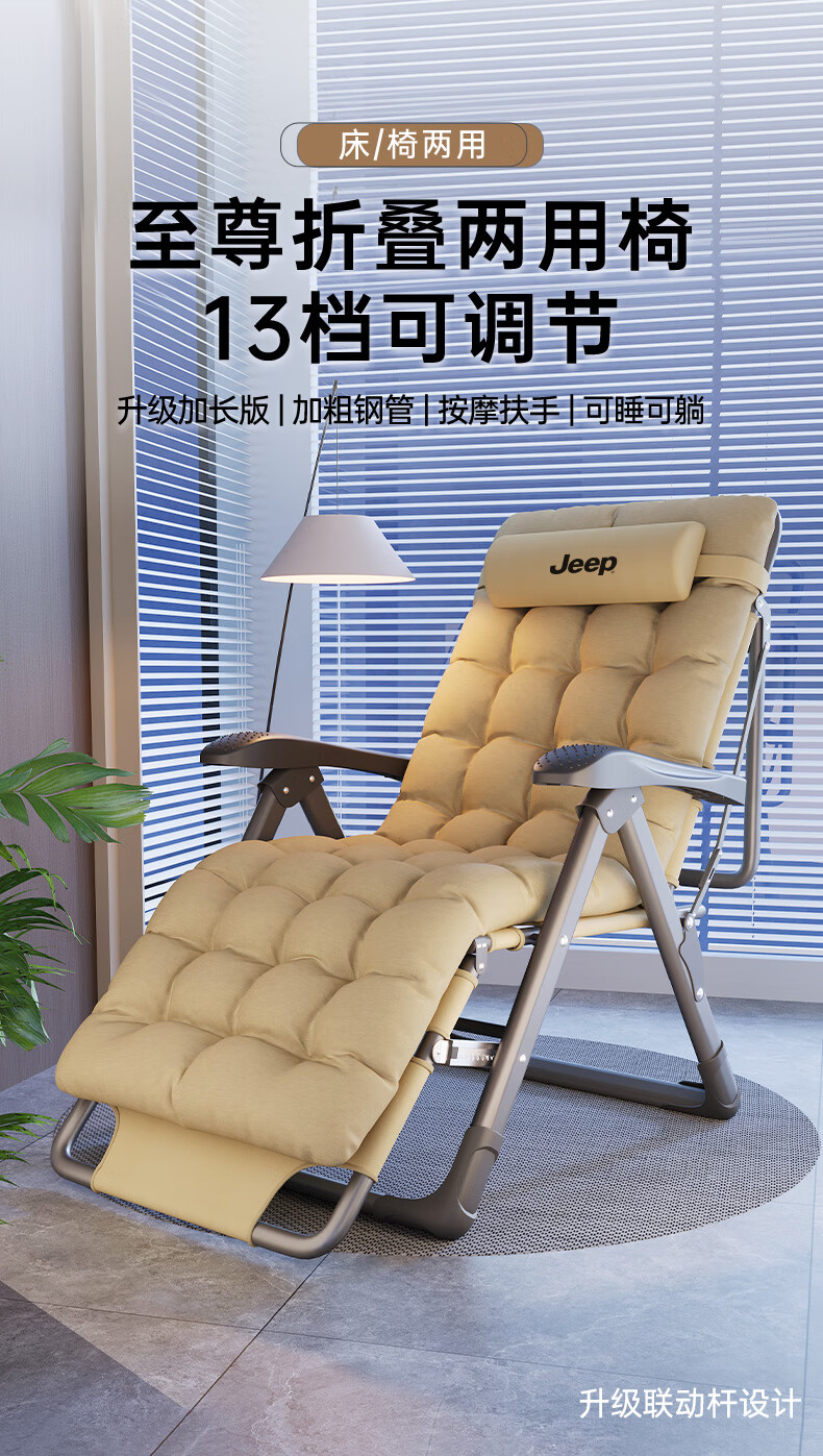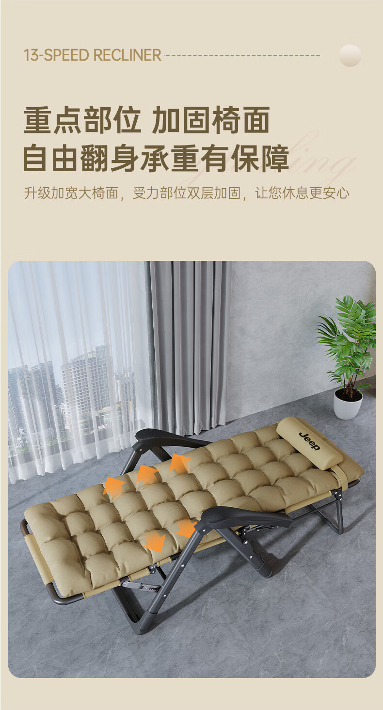 JEEP Folding Bed Recliner Office Lunch Break Sheet Single Bed Lunch Break Folding Chair Accompanying Bed Camp Bed Thickened Cotton Pad
