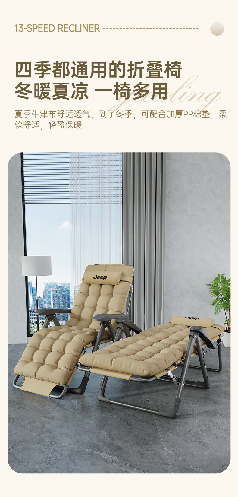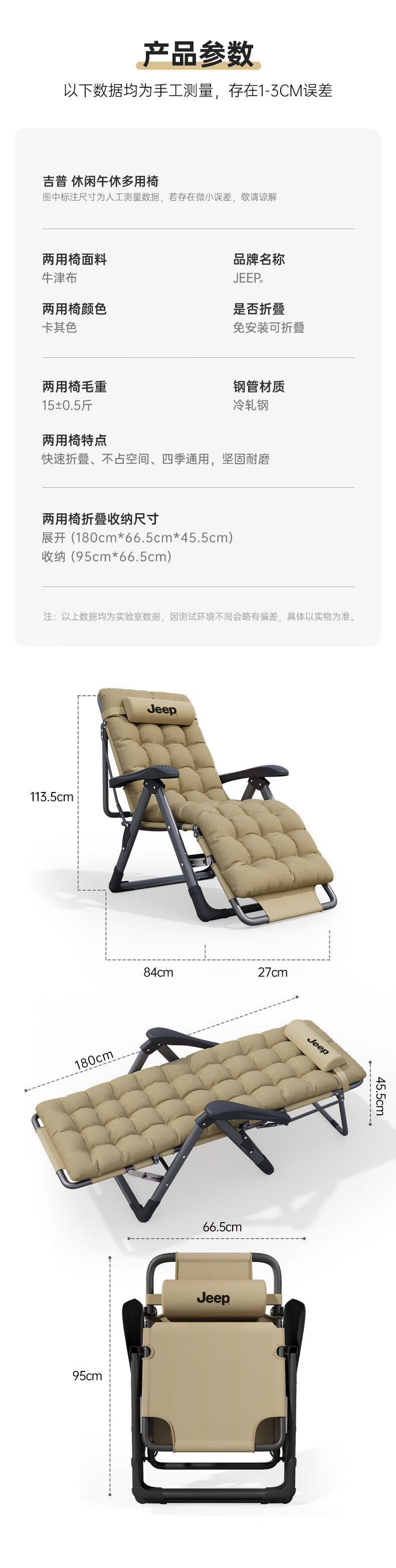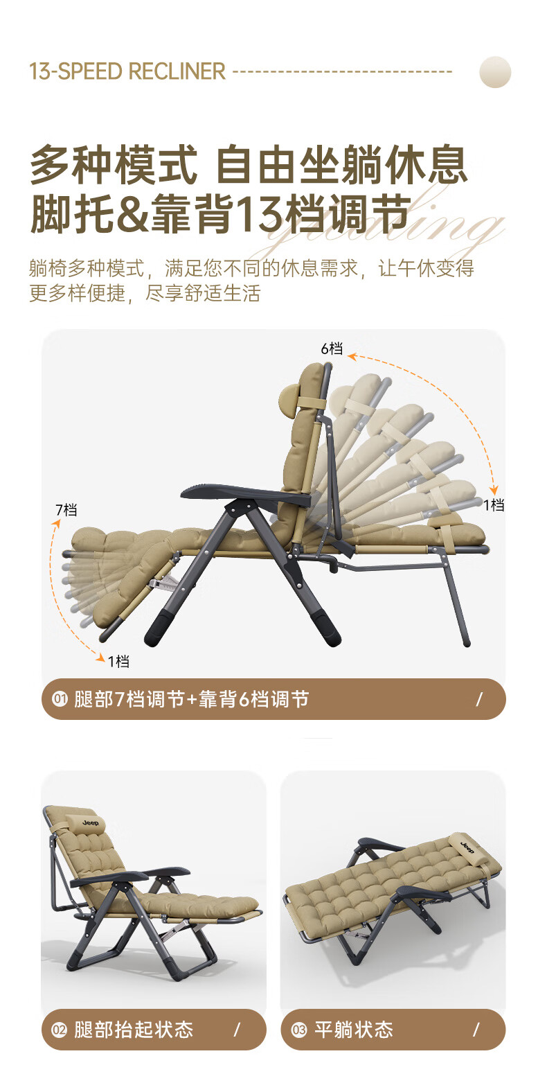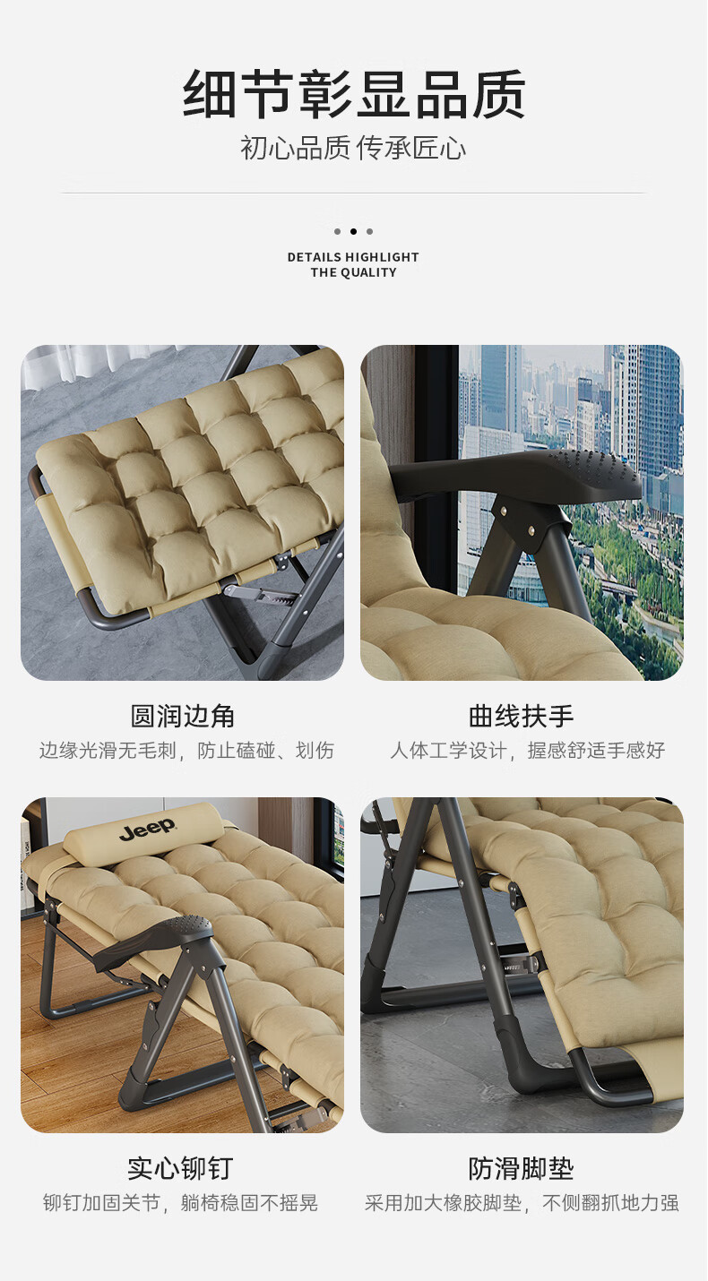 JEEP Folding Bed Recliner Office Lunch Break Sheet Single Bed Lunch Break Folding Chair Accompanying Bed Camp Bed Thickened Cotton Pad