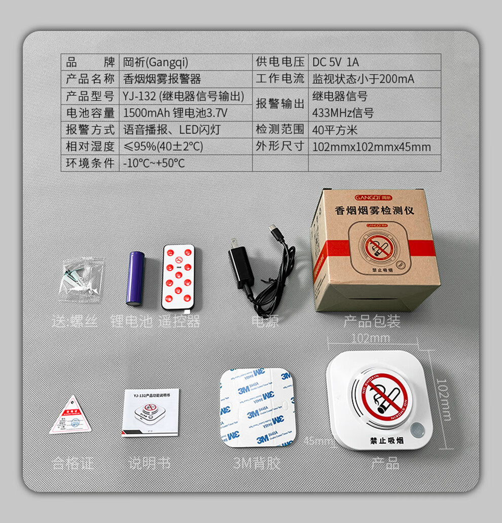 Gangqi YJ-132 non-smoking special smoke alarm toilet toilet cigarette smoke detector no smoking smoke alarm fire detection sensor