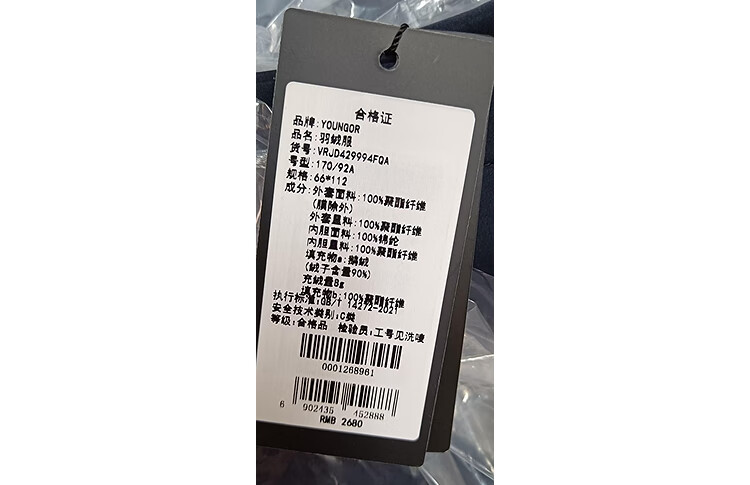 Youngor Men's Winter Goose Down Jacket Executive Business Coldproof Warm 90 Velvet Liner Jacket 429994