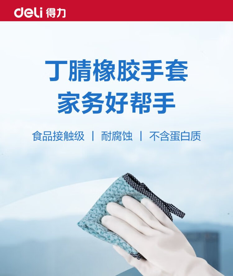 Deli Dishwashing and Cleaning Housework Gloves Latex/Rubber Food Grade Corrosion-Resistant Wear-Resistant Waterproof Anti-Slip Hand Guard 320mmL Size