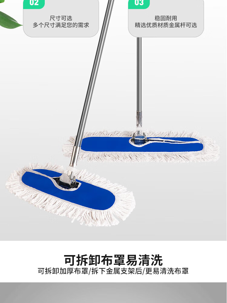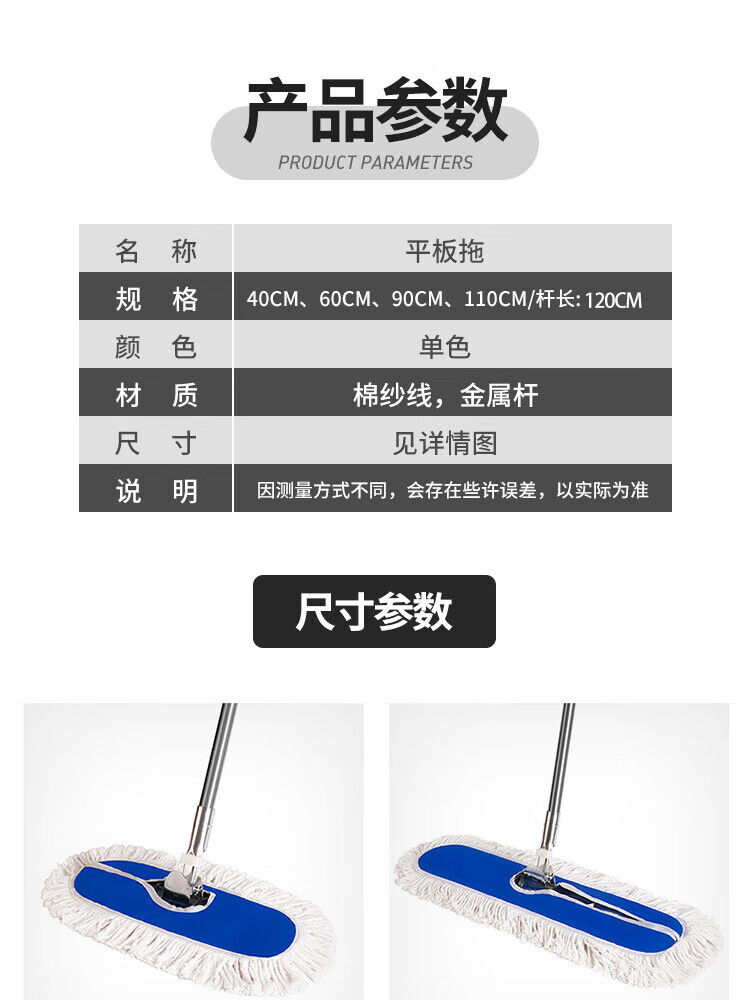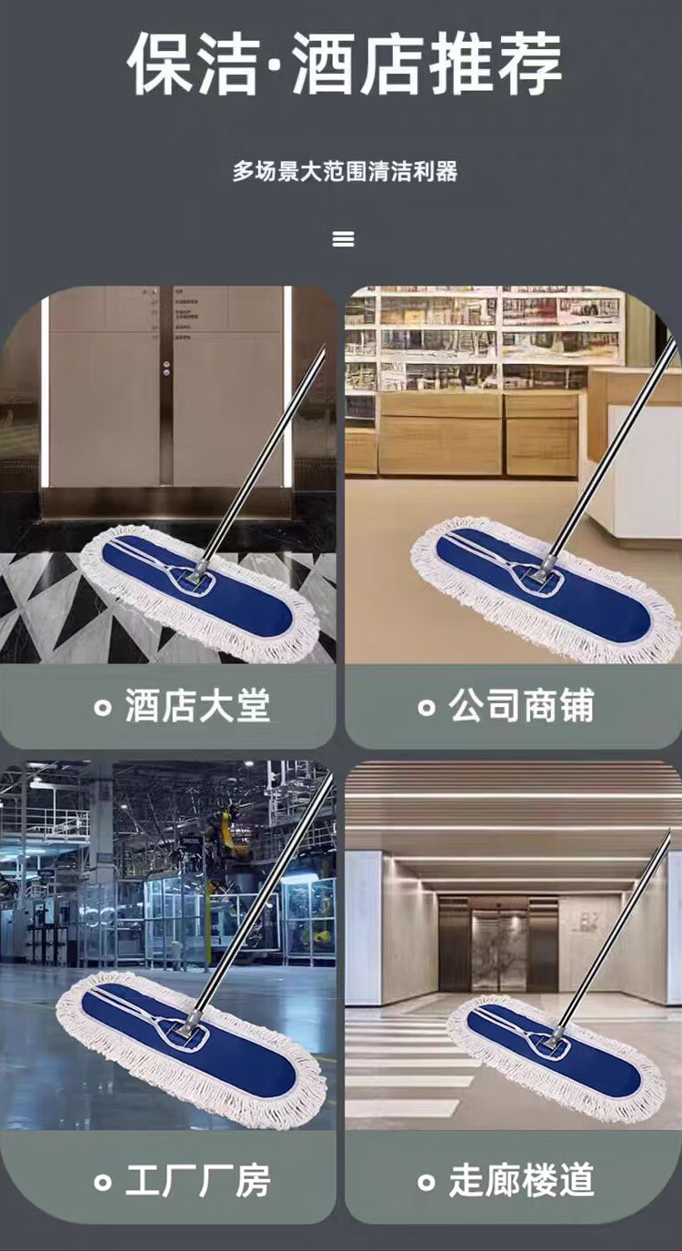 Mrs. Zhuang Jingcang Suda complete set of 90cm blue strap corporate flat mop large dust push mop cotton thread mop factory hotel long floor mop