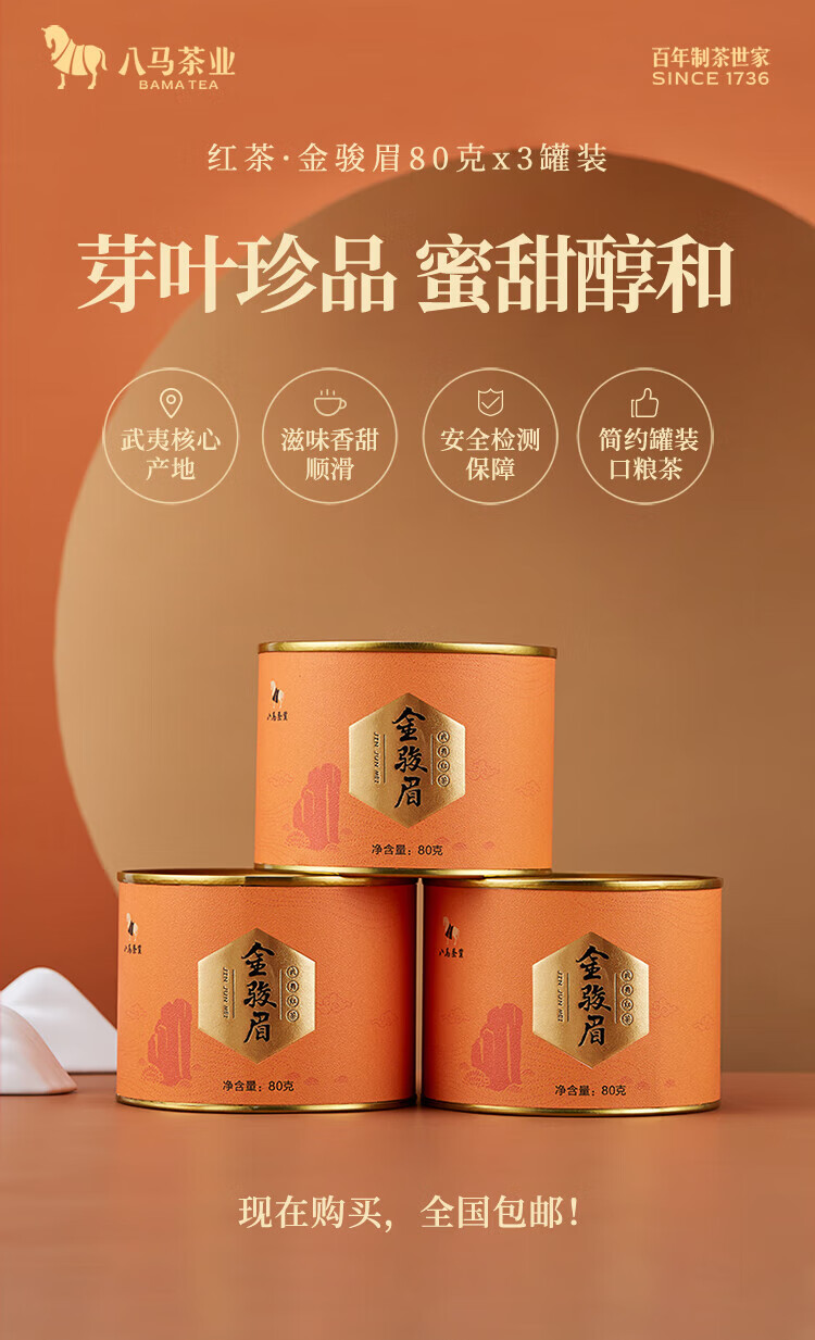 Bama Tea Black Tea Wuyishan Jinjunmei Special Tea 80g*3 cans