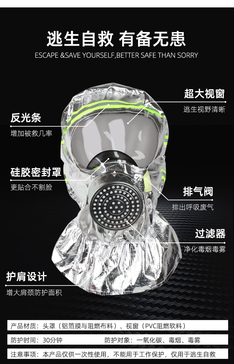 Quxing fire escape mask anti-virus and anti-smoke mask 3C certified full face filter respirator enlarged shawl style