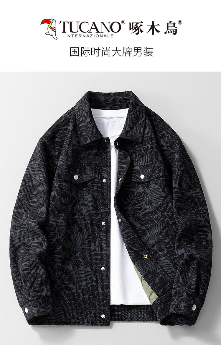 Woodpecker (TUCANO) coat men's autumn and winter work jacket men's loose casual lapel high-end clothes men's black XL