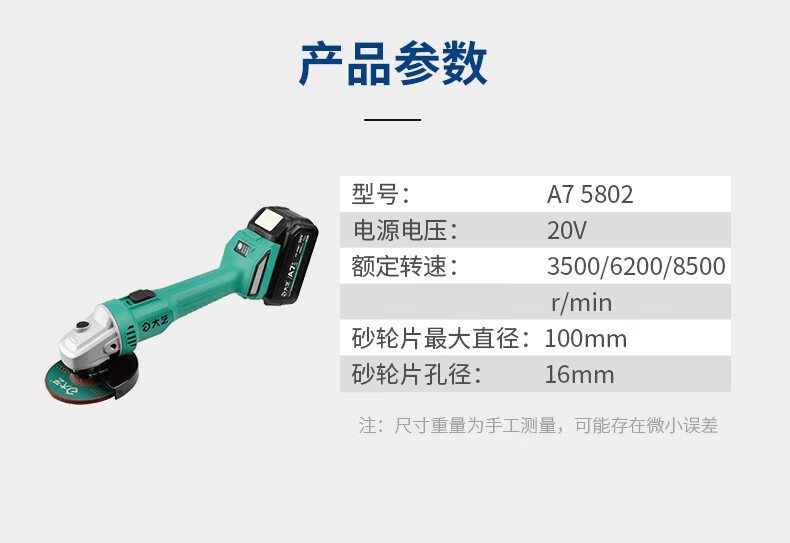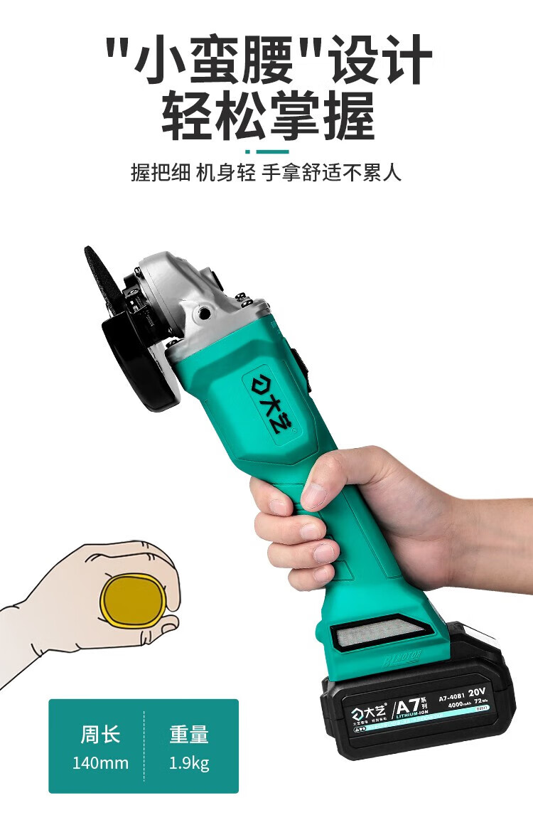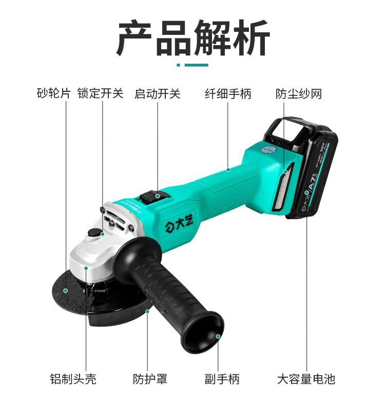 Dayi lithium angle grinder brushless rechargeable handheld grinder electric cutting machine A7-5802 4.0 single battery