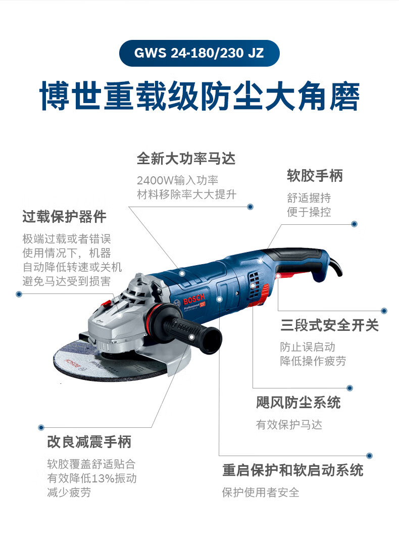 Bosch high power 2400 watt angle grinder polisher industrial grade grinder cutting machine GWS 24-230
