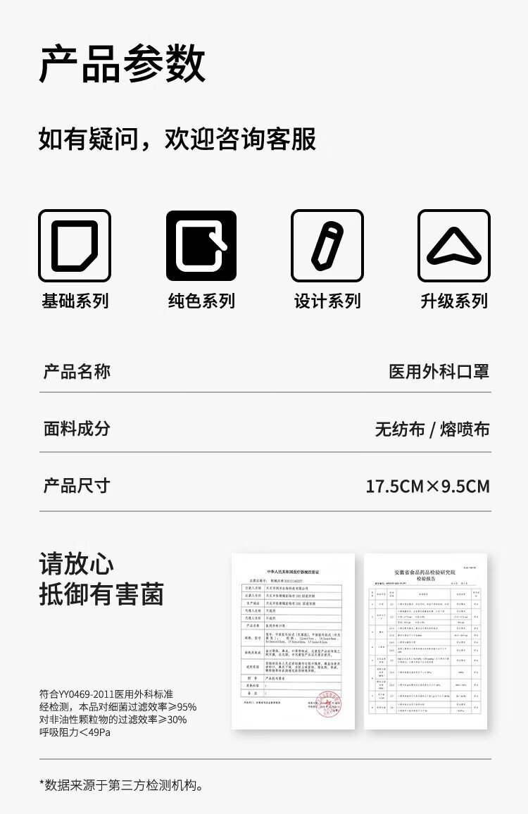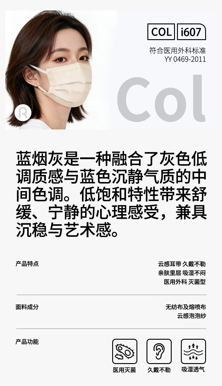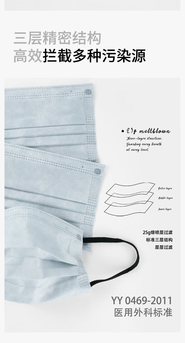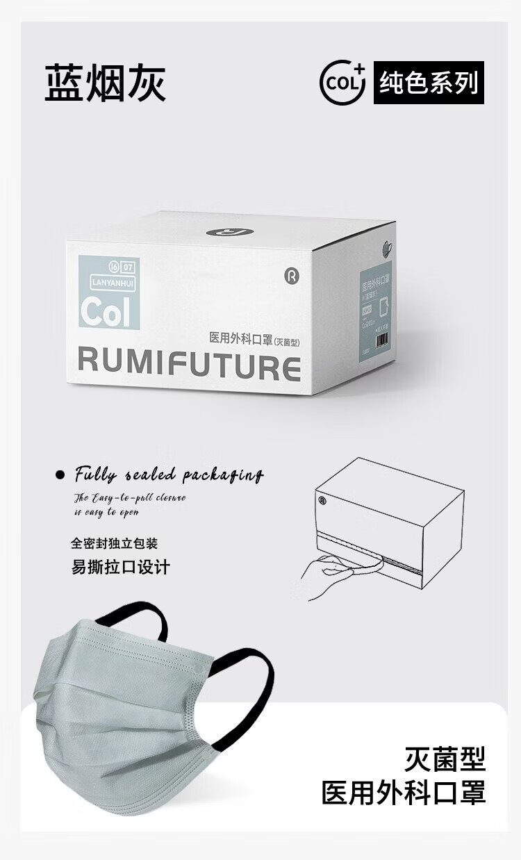 Runmi Bio's new disposable medical surgical mask sterilization grade high-value independent packaging blue ash/50 pieces