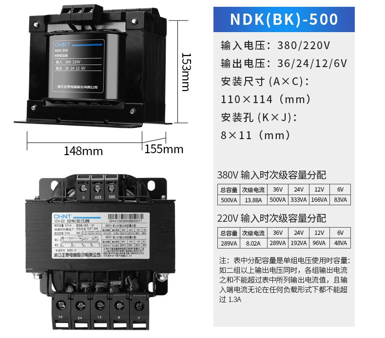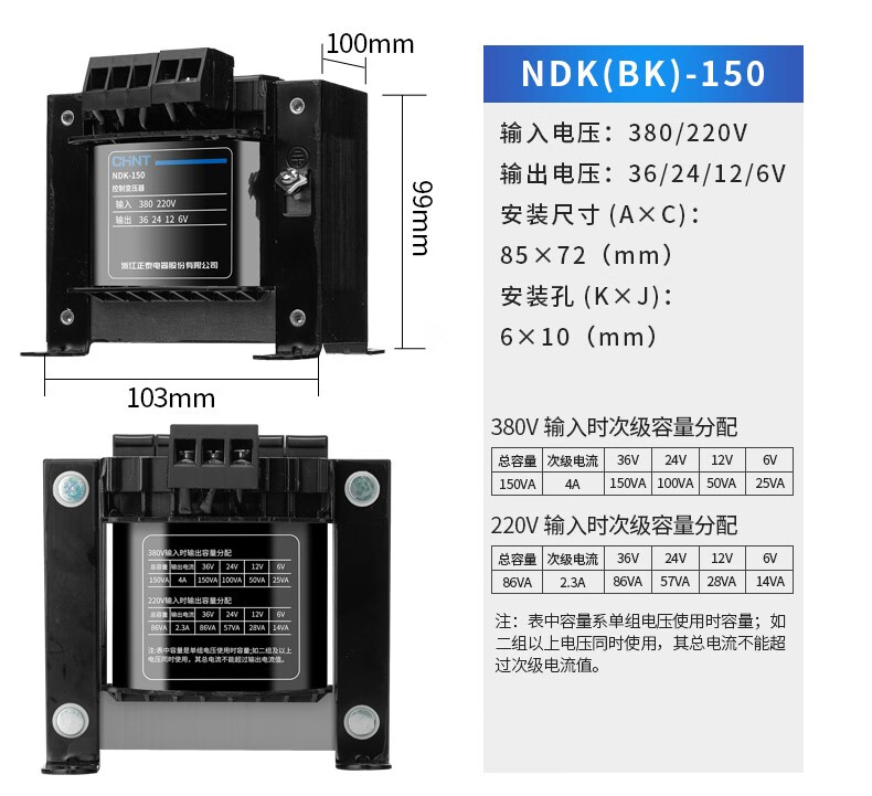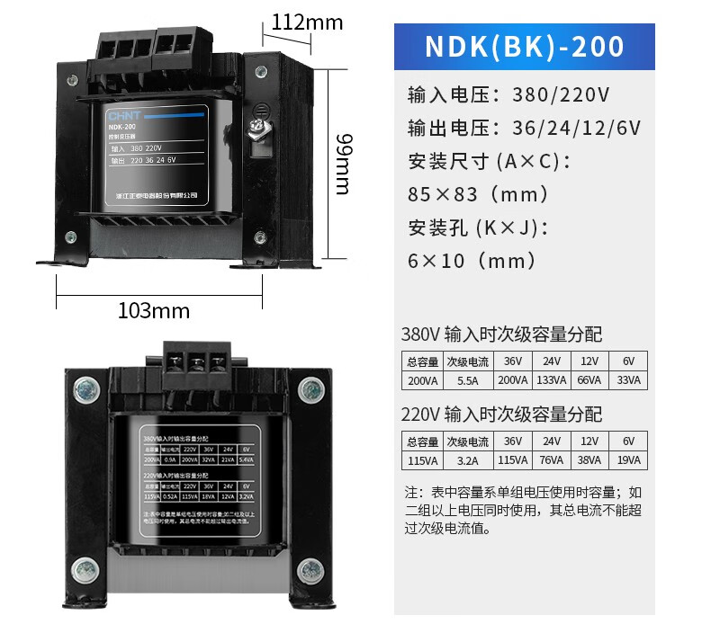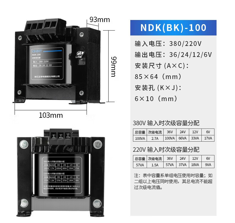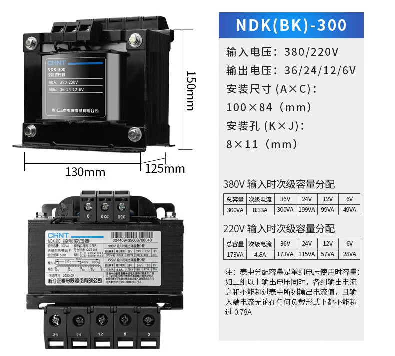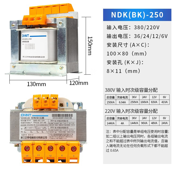 CHNT control transformer NDK-100VA 220/24