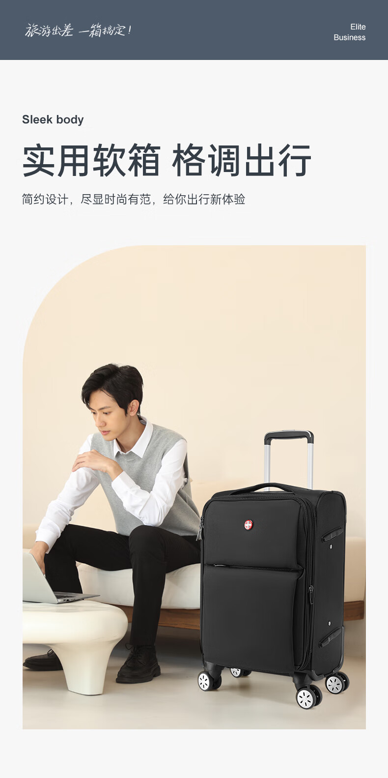 CROSSGEAR Swiss Army Knife suitcase trolley case for men's business trip Oxford cloth 24-inch suitcase boarding suitcase 20-inch with extension suitable for 3-5 days of travel