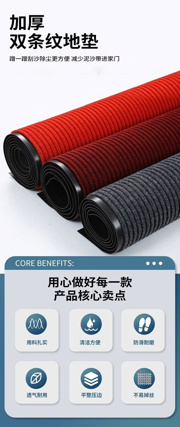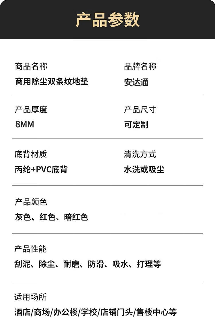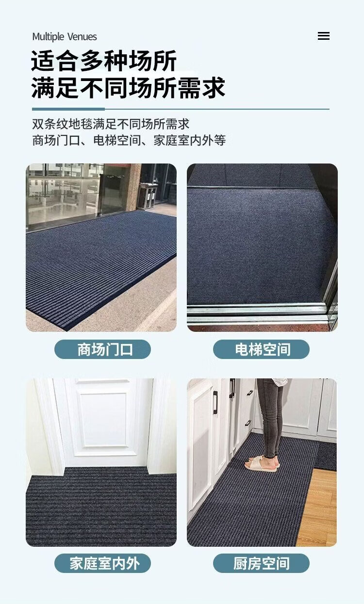 Andatong home floor mat double stripe anti-slip mat door kitchen office commercial dust removal wear-resistant water-absorbent and moisture-proof cuttable carpet gray double stripe 80*120cm