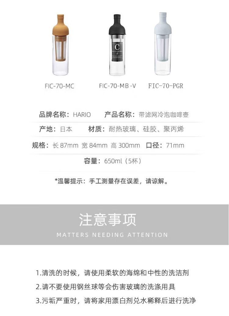 HARIO cold brew coffee pot heat-resistant glass cold brew pot with filter coffee cold brew pot cold brew glass pot 650ml