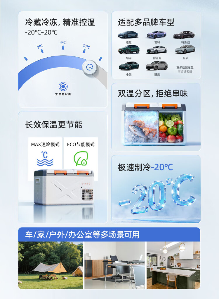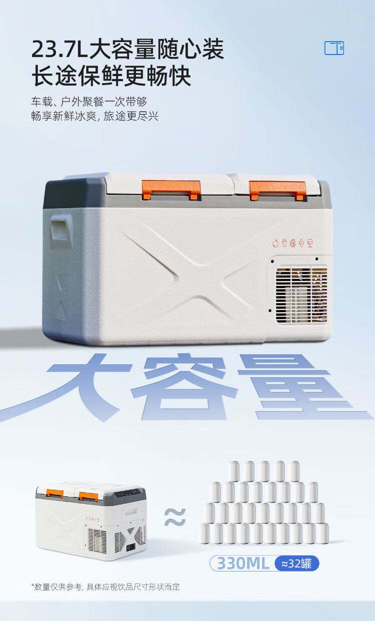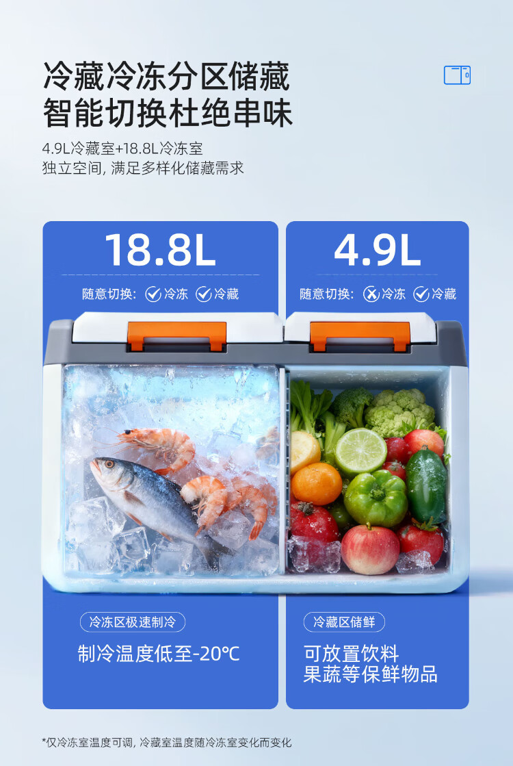 JiKrypton Car Refrigerator Mini Refrigerator Dual Temperature Zoned Refrigeration and Freezing Long-term Insulation Large Capacity 23.7L 9X